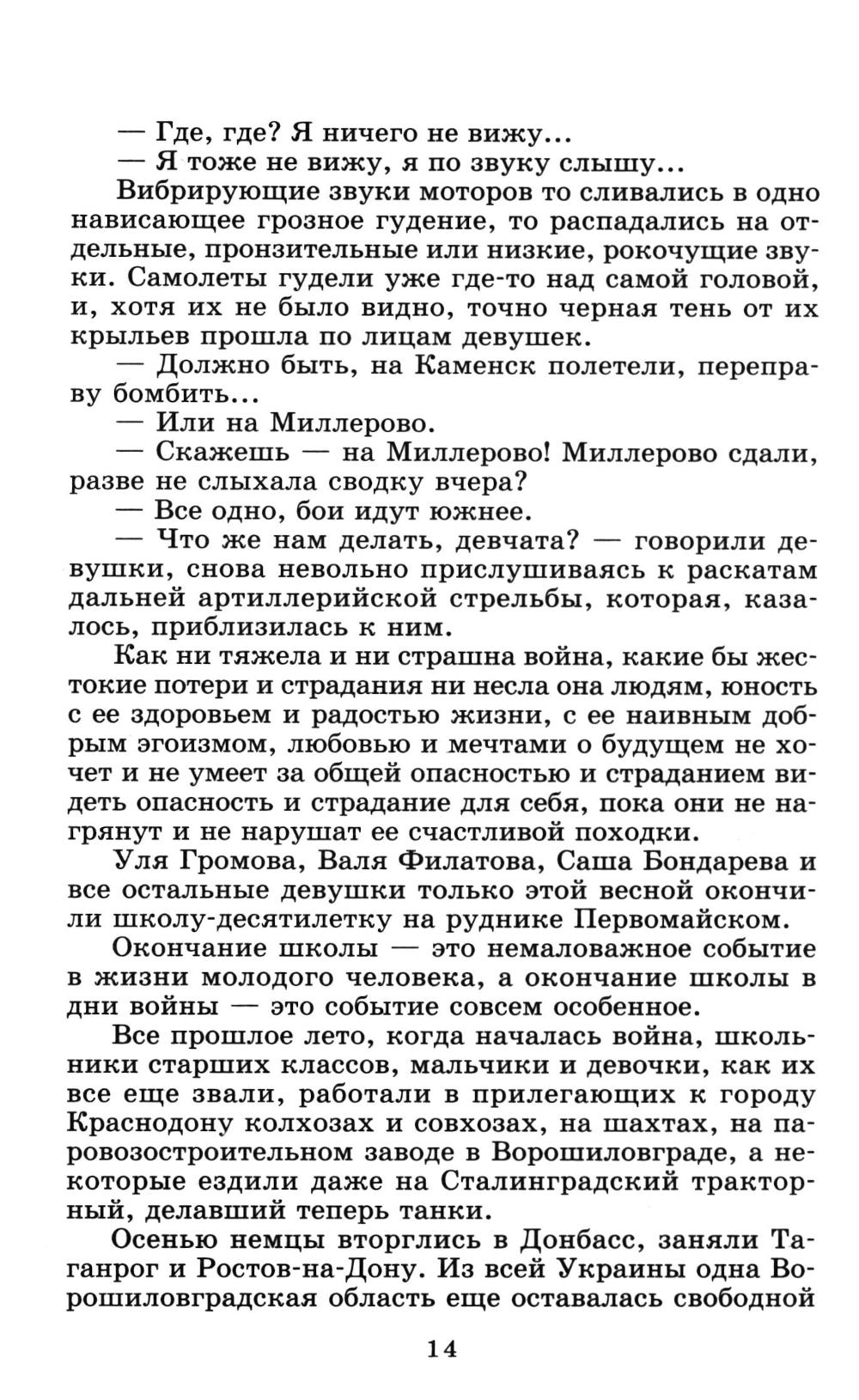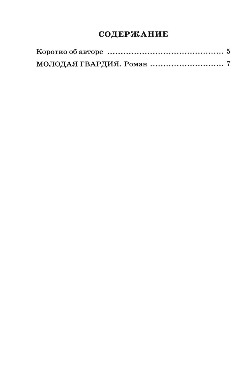 В книгу вошел первый вариант романа А. А. Фадеева «Молодая гвардия», изданный в 1946 году. В романе рассказывается о действовавшей во время Великой Отечественной войны молодежной подпольной организации «Молодая гвардия», о ее героической борьбе с немецкими захватчиками в оккупированном Краснодоне. Роман включен в перечень «100 книг по истории, культуре и литературе народов Российской Федерации, рекомендуемые школьникам к самостоятельному прочтению». Для старшего школьного возраста.| Издательство | Детская литература |