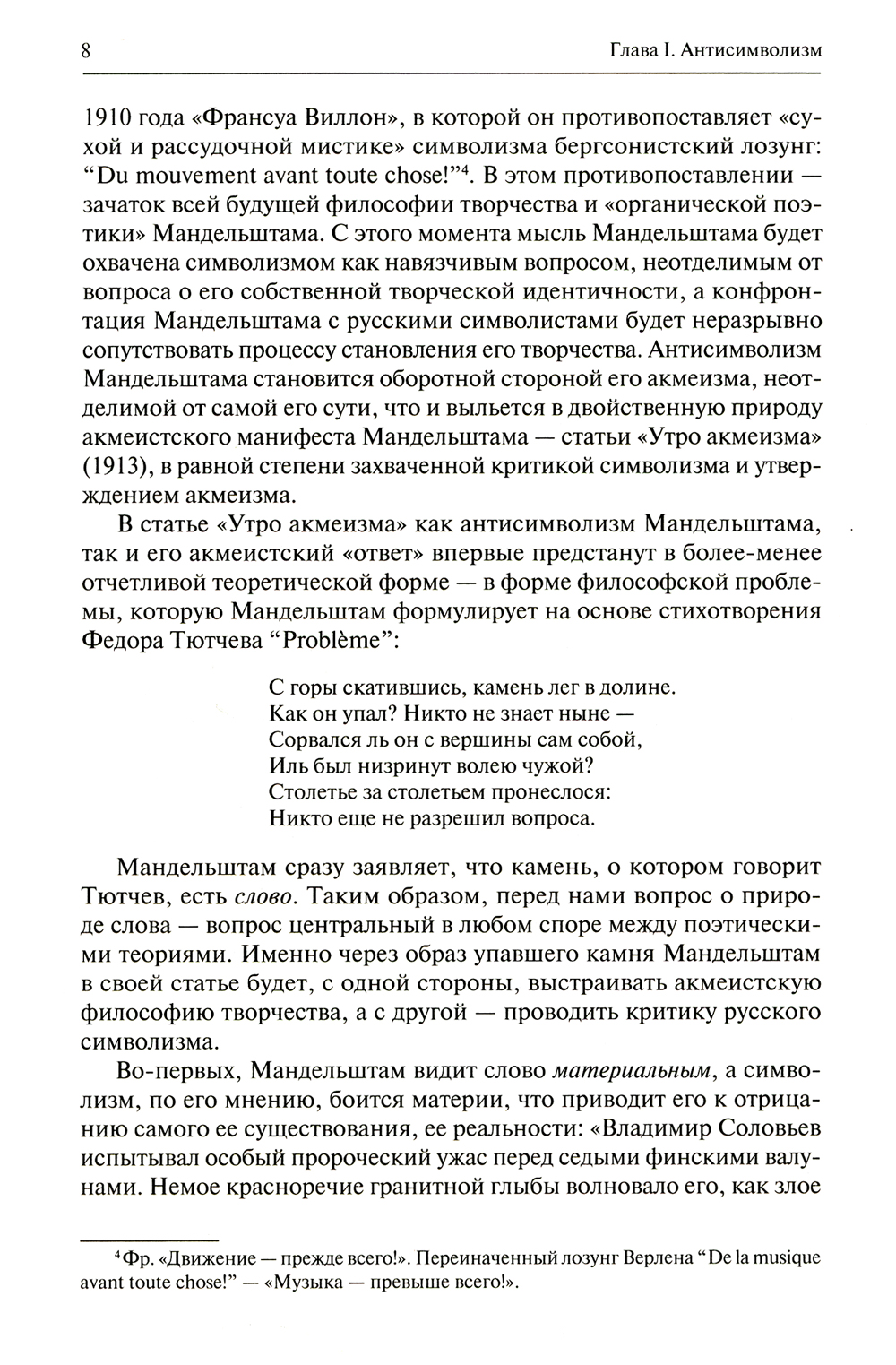 Книга «Молодой Мандельштам» посвящена первым трем годам творчества Осипа Мандельштама. На материале ранних стихов поэта рассмотрено становление его философии творчества, выдвинуты тезисы об антисимволистской природе поэтики Мандельштама, а также об ее укорененности в философии Анри Бергсона и в творчестве Федора Сологуба и Федора Тютчева.