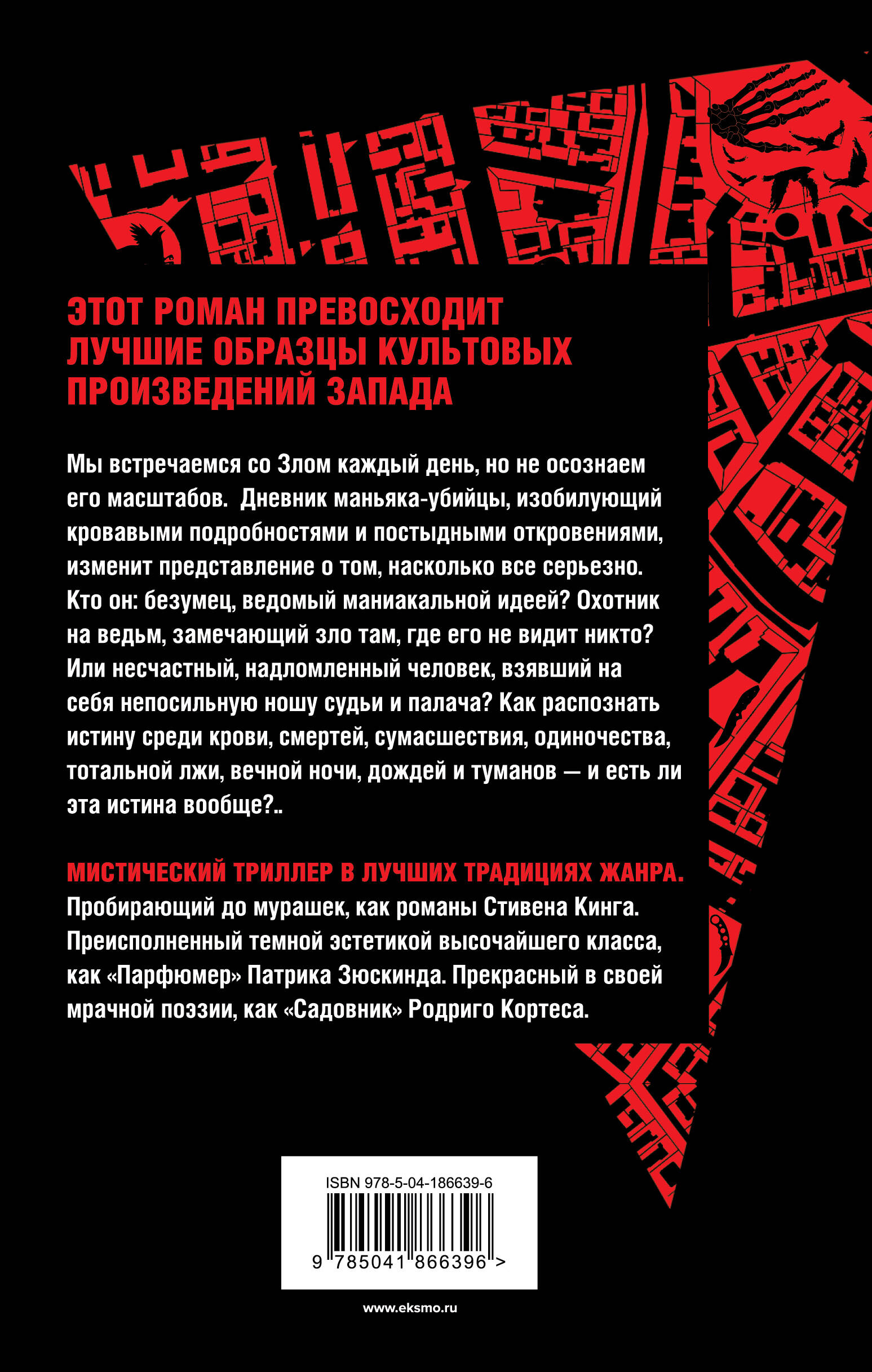 Мы встречаемся со Злом каждый день, но не осознаем его масштабов. Дневник маньяка-убийцы, изобилующий кровавыми подробностями и постыдными откровениями, изменит представление о том, насколько все серьезно. Кто он: безумец, ведомый маниакальной идеей? Охотник на ведьм, замечающий зло там, где его не видит никто? Или несчастный, надломленный человек, взявший на себя непосильную ношу судьи и палача? Как распознать истину среди крови, смертей, сумасшествия, одиночества, тотальной лжи, вечной ночи, дождей и туманов - и есть ли эта истина вообще?..