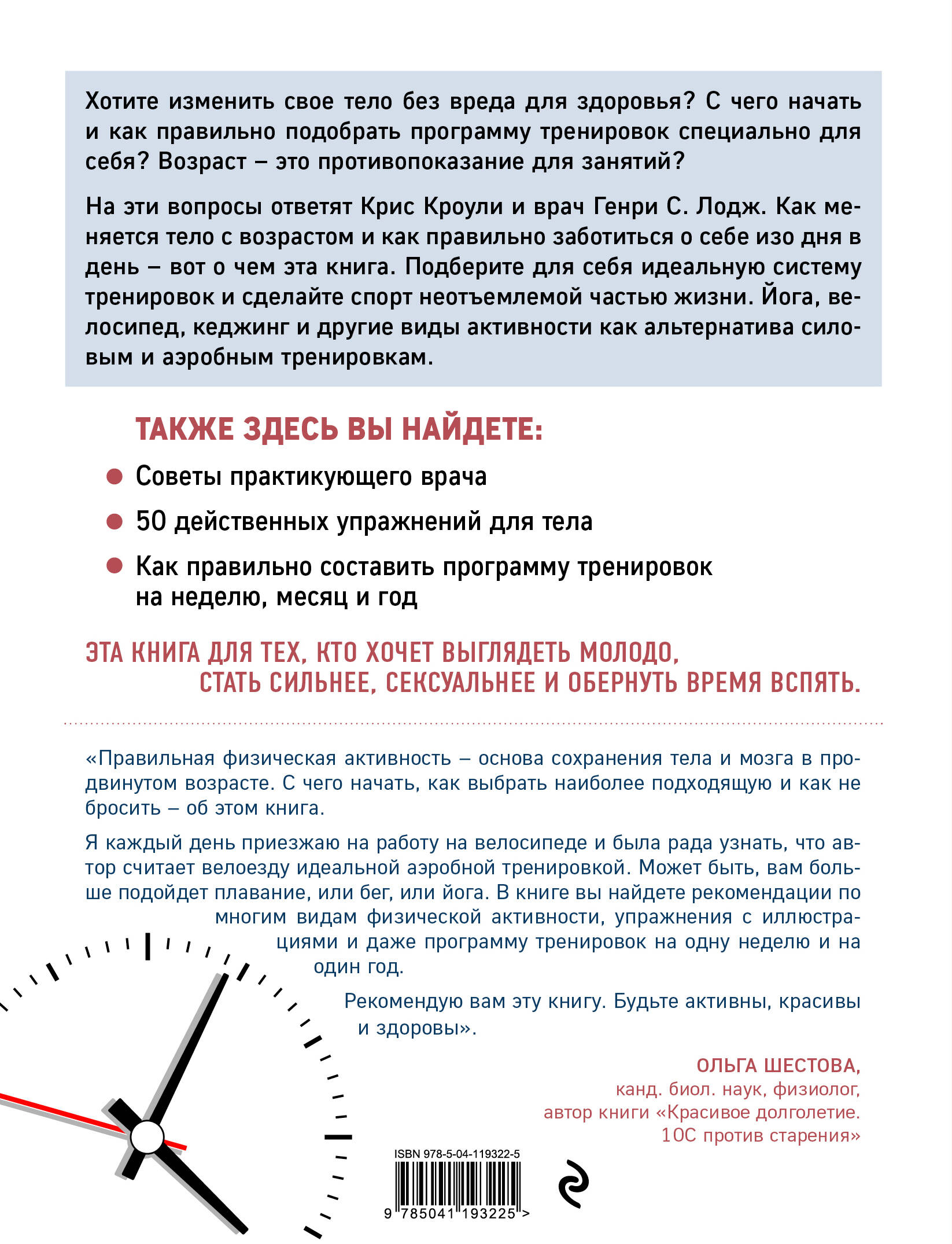 В этой книге Крис Кроули и Генри С. Лодж рассказывают о том, как правильно держать себя в форме, не ссылаясь на возраст! Подробные описания процессов старения организма, рекомендации и предостережения во время упражнений от доктора Генри С. Лоджа. Программа тренировок, рассчитанная как на силовые, так и на аэробные упражнения. Каждый найдёт для себя подходящий курс, двигаясь в своём собственном темпе без рисков для здоровья и негативных последствий. Книга для тех, кто хочет выглядеть молодо, стать сильнее, сексуальнее и обернуть время вспять.| Издательство | ООО "Издательство "Эксмо" |