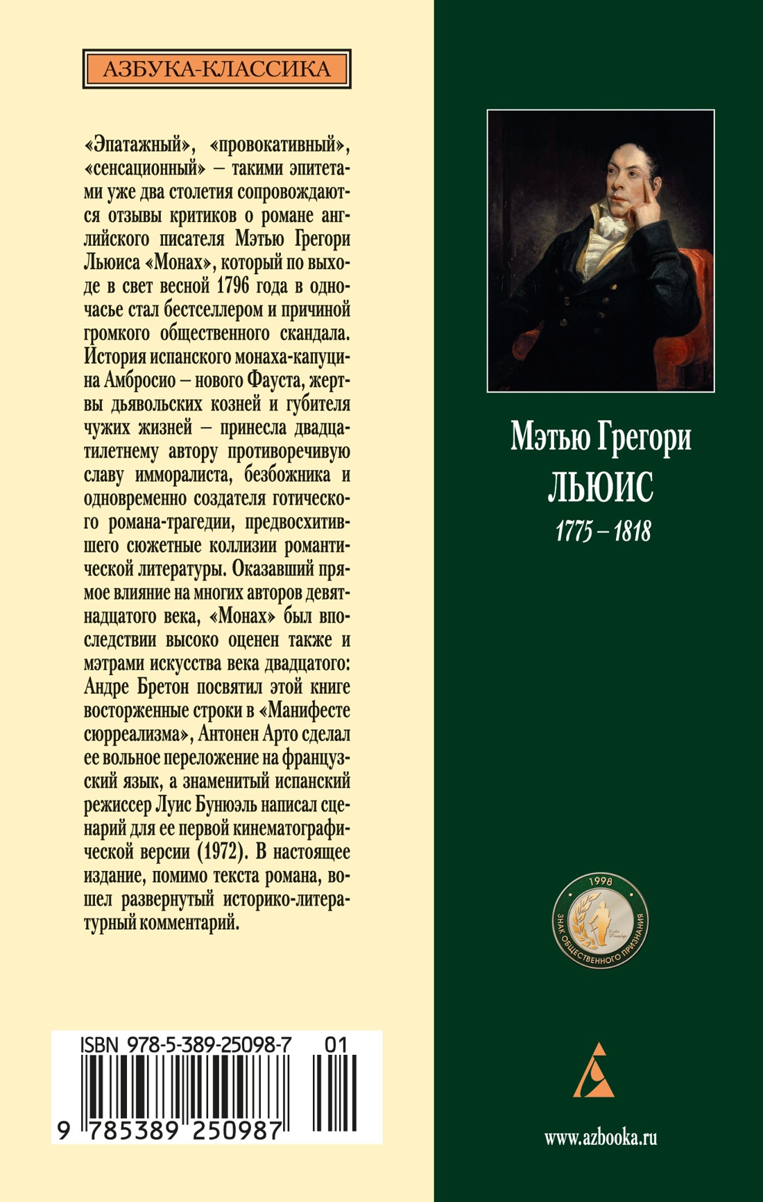 «Эпатажный», «провокативный», «сенсационный» - такими эпитетами уже два столетия сопровождаются отзывы критиков о романе английского писателя Мэтью Грегори Льюиса «Монах», который по выходе в свет весной 1796 года в одночасье стал бестселлером и причиной громкого общественного скандала. История испанского монаха-капуцина Амбросио - нового Фауста, жертвы дьявольских козней и губителя чужих жизней - принесла двадцатилетнему автору противоречивую славу имморалиста, безбожника и одновременно создателя готического романа-трагедии, предвосхитившего сюжетные коллизии романтической литературы. Оказавший прямое влияние на многих авторов девятнадцатого века, «Монах» был впоследствии высоко оценен также и мэтрами искусства века двадцатого: Андре Бретон посвятил этой книге восторженные строки в «Манифесте сюрреализма», Антонен Арто сделал ее вольное переложение на французский язык, а знаменитый испанский режиссер Луис Бунюэль написал сценарий для ее первой кинематографической версии (1972). В настоящее издание, помимо текста романа, вошел развернутый историко-литературный комментарий.| Издательство | Азбука |