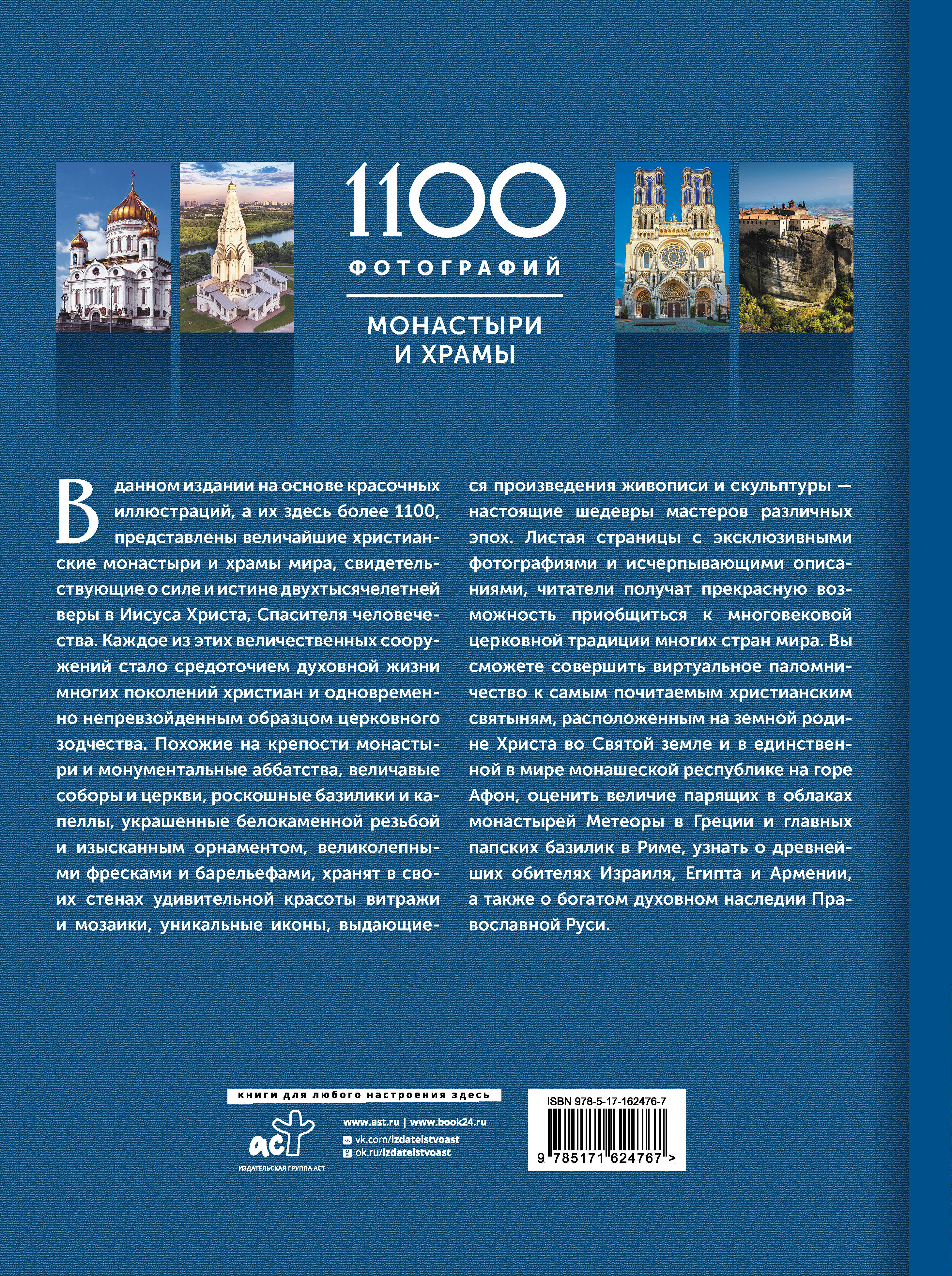 Эта книга расскажет о монастырях и храмах - церковных сооружениях, ставших средоточием духовной жизни человека и его устремлений к высшим сферам бытия, к вере в Бога и бессмертие души. В издании на основе около 1100 зрелищных иллюстраций представлены наиболее крупные и известные христианские обители, соборы и церкви мира. Каждый храм Божий и каждый монастырь, как самый древний, так и совсем новый, вне зависимости от времени основания и принадлежности к конфессии представляет собой не только святилище духа и хранилище священных реликвий, но и подлинный шедевр церковного зодчества. Эти величественные сооружения, созданные талантливыми мастерами разных эпох, украшены роскошной лепниной и белокаменной резьбой, искусными барельефами и скульптурами, уникальными фресками и иконами, яркими мозаиками и витражами, которые, сами по себе являясь святынями, стали гордостью и национальным достоянием тех или иных стран. На страницах этого издания духовное наследие христианства, бережно хранимое в монастырях и храмах, предстает во всем многообразии и полноте. Эксклюзивные фотографии, исчерпывающие описания, важная информация и интересные факты позволят читателям совершить виртуальное паломничество по святым местам Израиля и Иордании, Египта и Греции, Армении и Болгарии, Италии и Испании, Франции и Германии и, конечно же, России, а также приобщиться к их многовековой церковной традиции.| Издательство | Издательство "АСТ" |