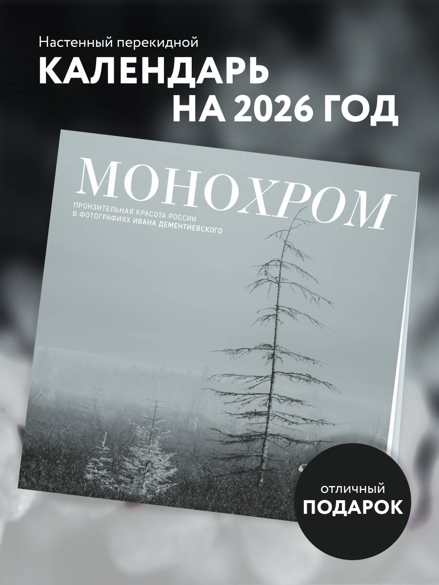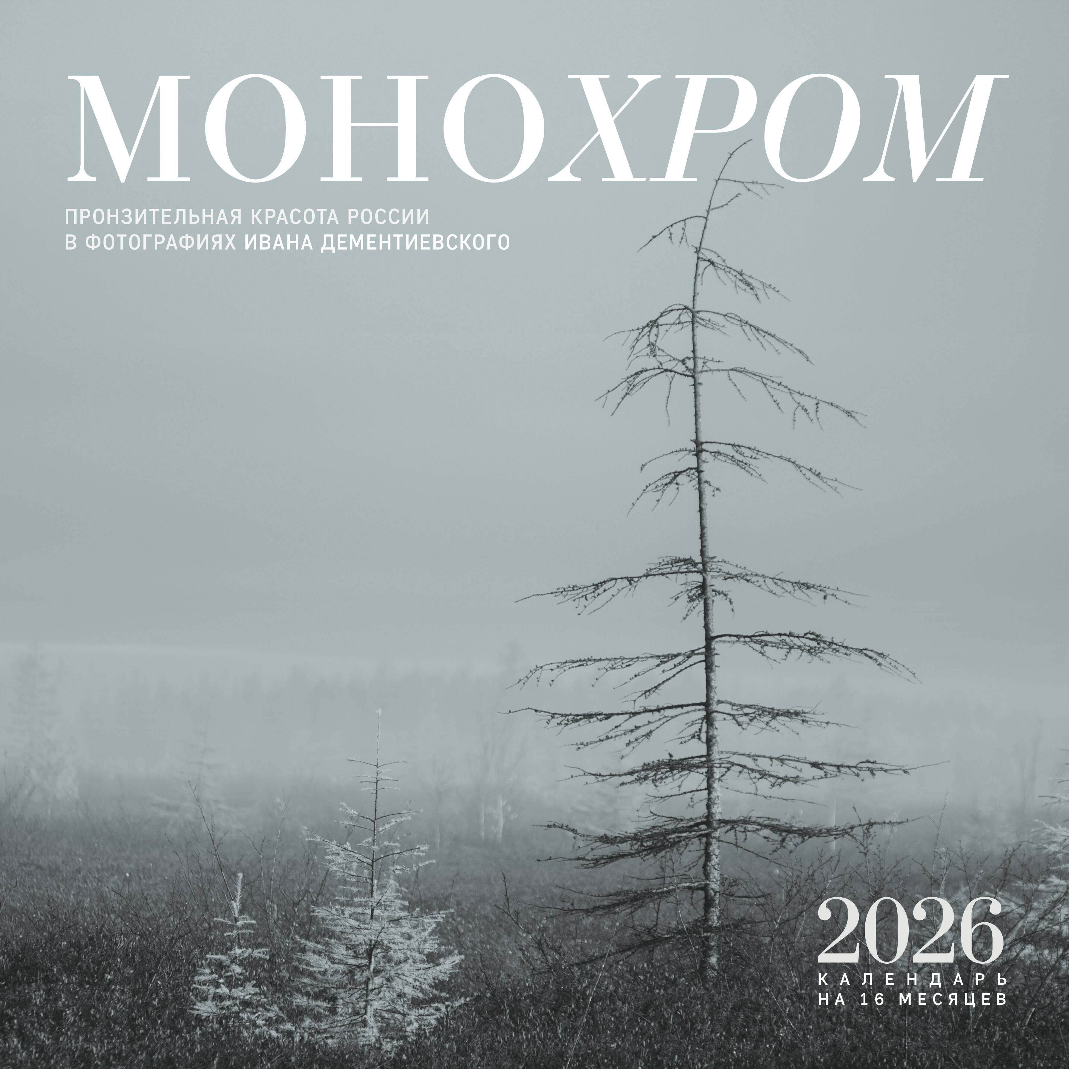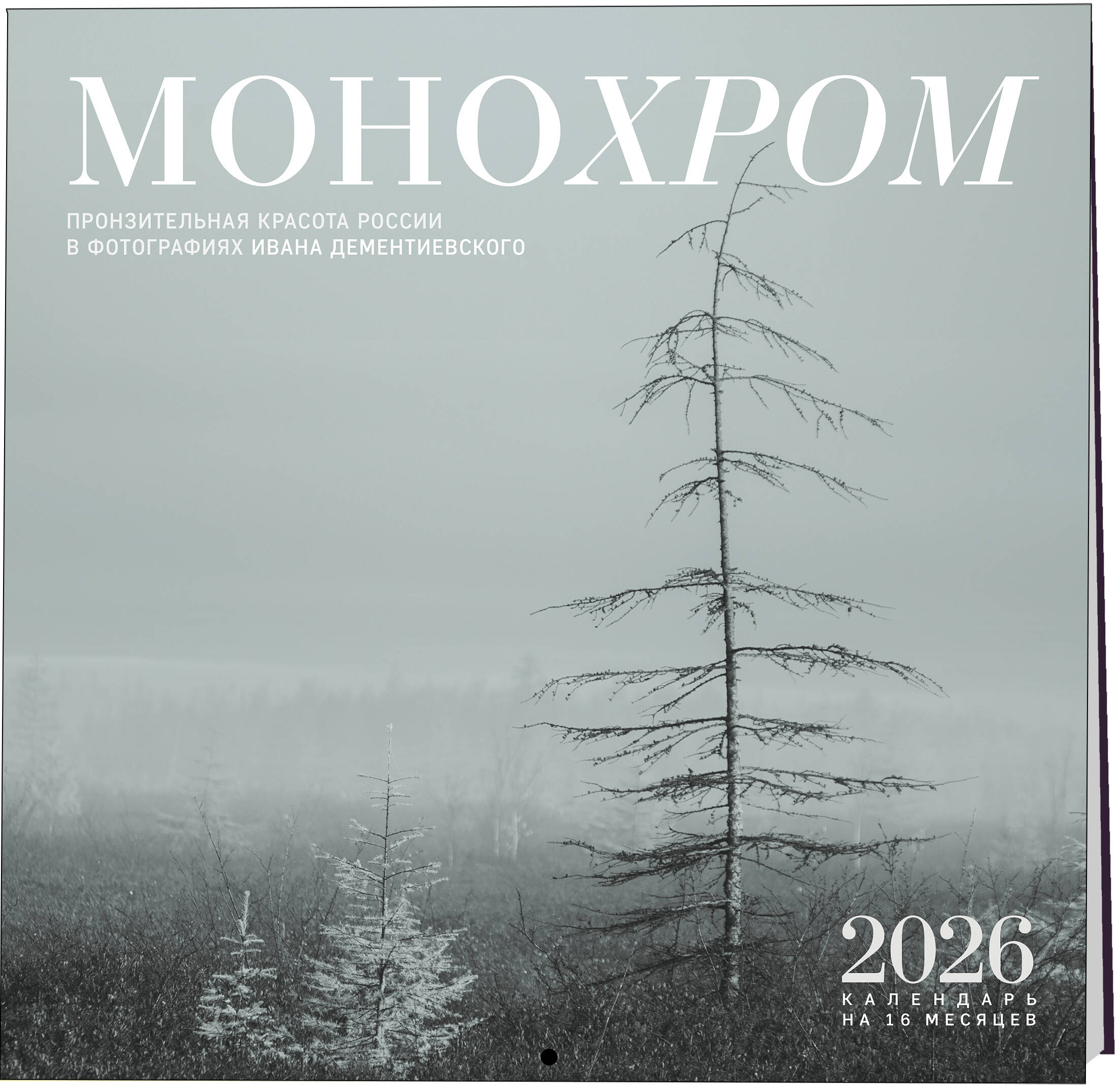 Аннотация: Монохром. Пронзительная красота России в фотографиях Ивана Дементиевского. Календарь настенный на 16 месяцев на 2026 год (300х300 мм)