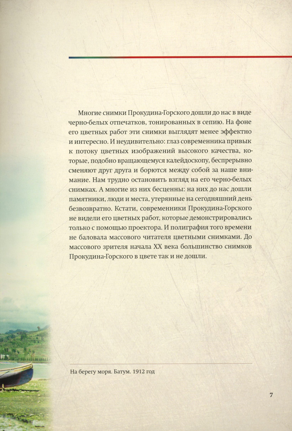 Перед революцией Прокудин-Горский посвятил десятилетие экспедициям и съемкам. Он побывал на Урале, в Поволжье, изъездил всю Центральную Россию. Последние снимки он сделал на Русском Севере. Через столетие его черно-белые снимки донесли нам образы как простых людей, так и памятников архитектуры. Кроме закрытых и разрушенных храмов, он запечатлел села и города, затопленные водами новых водохранилищ. Некоторые из этих памятников мы не увидим уже никогда. Путешествуя по окраинам империи, он посетил Баку и древний город Самарканд, чьи улицы и быт жителей почти не изменились с XV века. Некоторые запечатленные им памятники отечественной истории были утрачены уже в нашем, XXI веке.