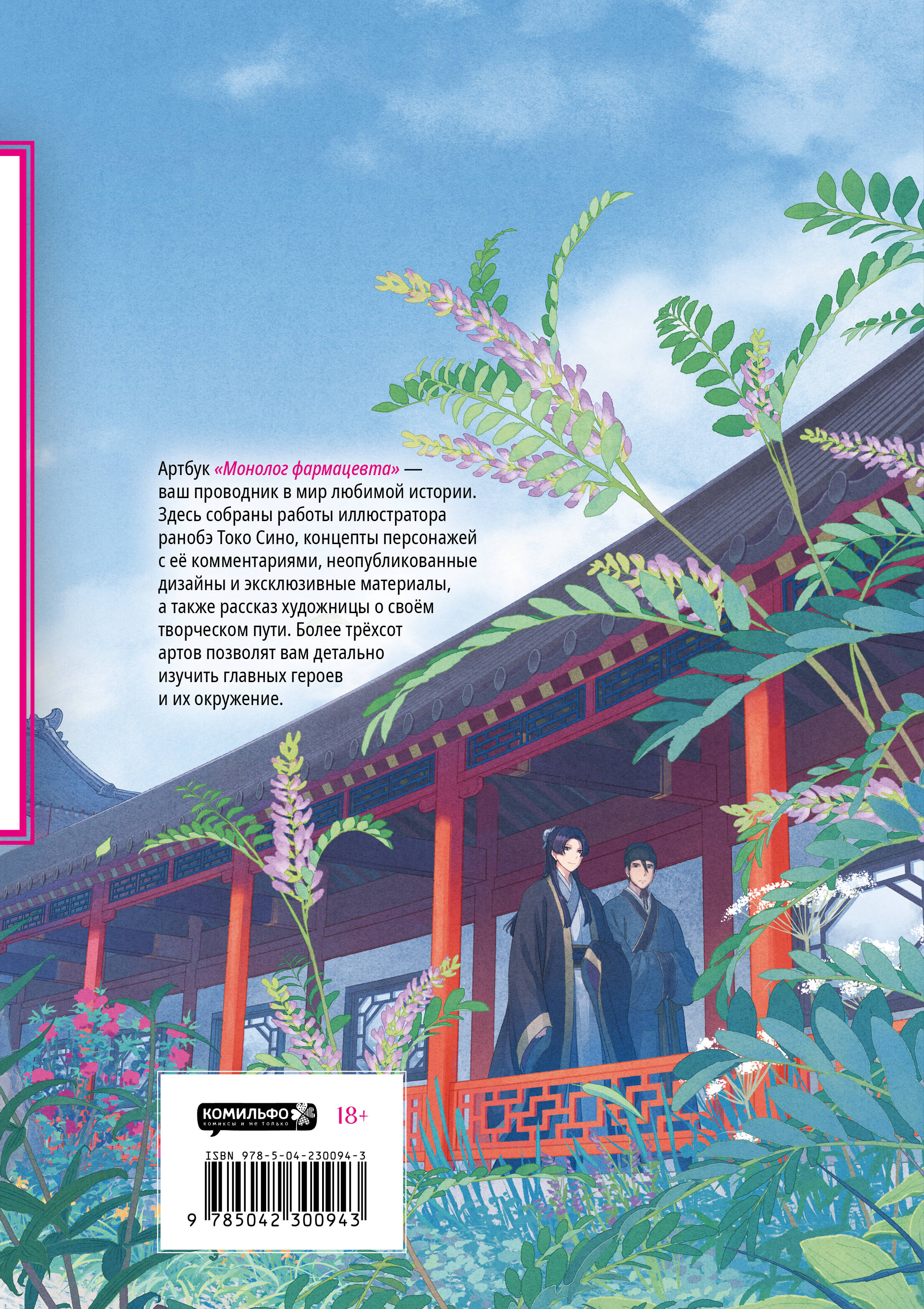 Артбук «Монолог фармацевта» - ваш проводник в мир любимой истории. Здесь собраны работы иллюстратора ранобэ Токо Сино, концепты персонажей с её комментариями, неопубликованные дизайны и эксклюзивные материалы, а также рассказ художницы о своём творческом пути. Более трёхсот артов позволят вам детально изучить главных героев и их окружение.| Издательство | ООО "Издательство "Эксмо" |