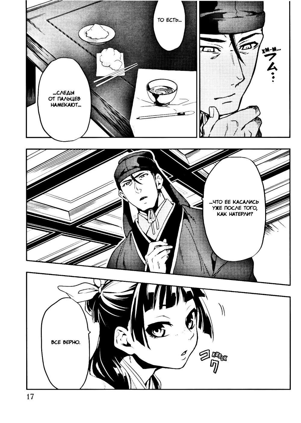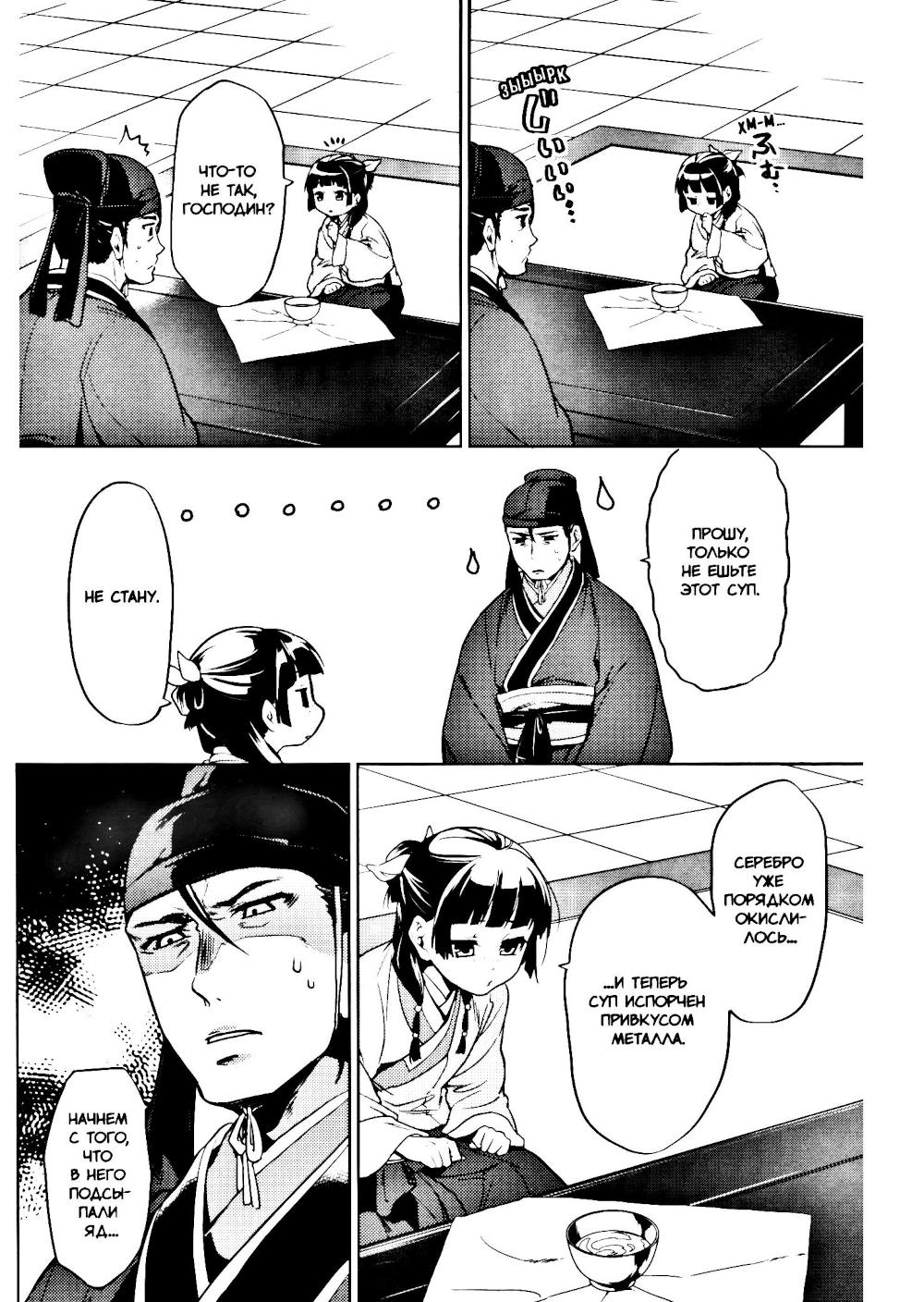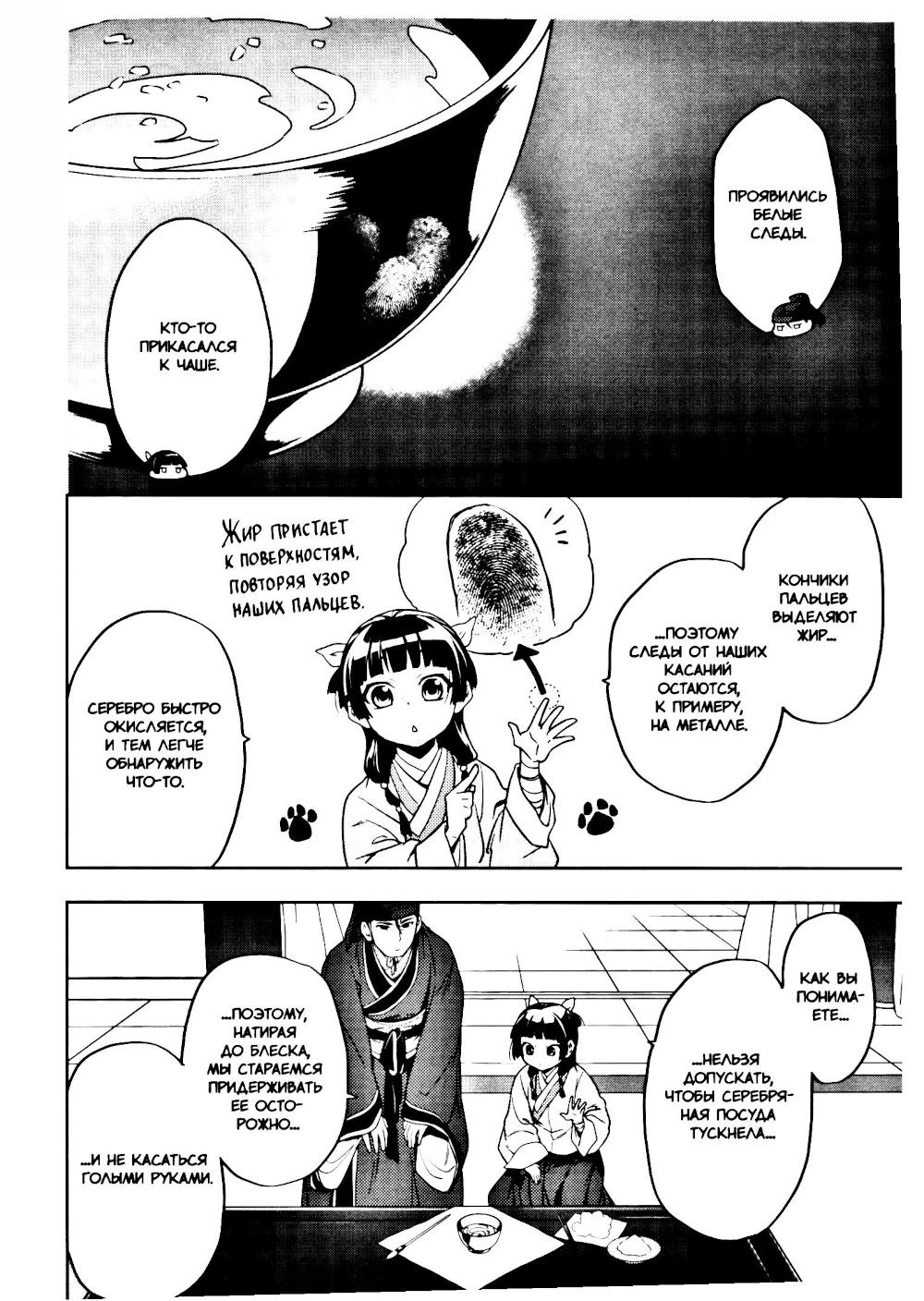 Маомао за особые заслуги принимают на службу в Нефритовый дворец, и теперь она день ото дня пробует на яд кушанья наложницы Юйе. Казалось бы, положенный срок она проведет без приключений, но вдруг на пиршестве, устроенном в императорском саду, пытаются отравить нравственную наложницу Лишу! Пусть она совсем молода и едва ли может соперничать с другими наложницами высокого ранга, а все же против нее явно строят козни. Даже служанки обратились против бедняжки! Вмешается ли Маомао?| Издательство | ЭксЭл Медиа |