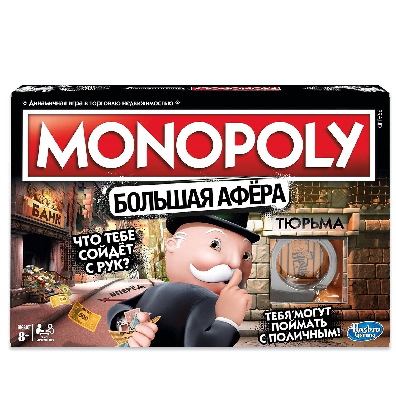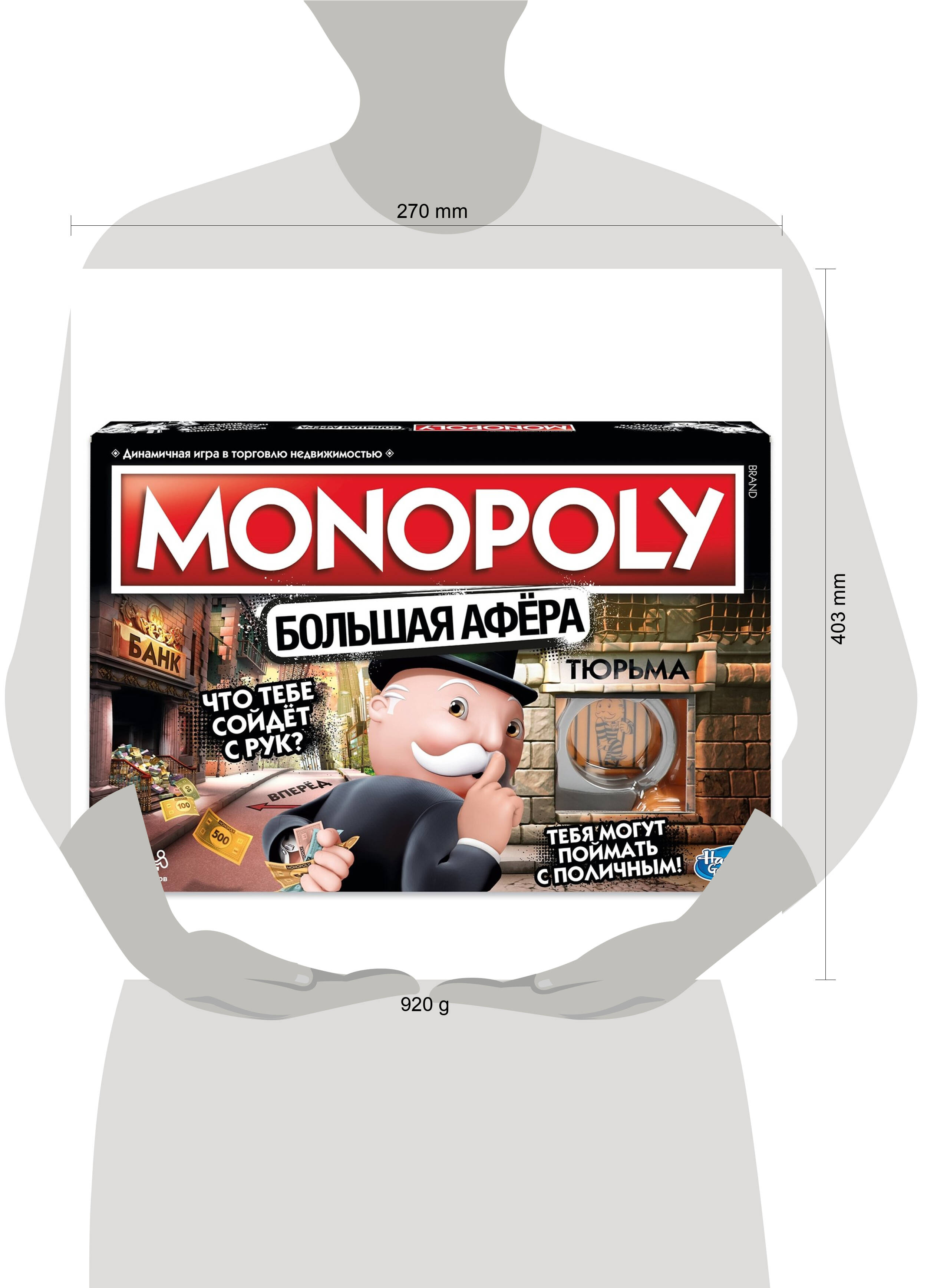 Игра настольная Монополия Большая Афера понравится всем поклонникам классической версии и новичкам. Покупайте собственность, инвестируйте в дома и отели, собирайте ренту и заключайте выгодные сделки с одним "но": в этой версии игры нарушаются все правила! Игровое поле, на котором приветствуется несоблюдение правил игры, заимствование денег у других игроков и любые другие аферы. Заметки на игровом поле, специальные карточки и правила моментально вдохновляют открыть в себе афериста. Проверните аферу и получите награду, а в случае провала достойно примите воздаяние за мошенничество. Игрушечные наручники оставляют игроков "прикованными" к игровому полю, пока они не отбудут наказание. В комплекте: Игровое поле, пластиковый блок наручников, 6 жетонов, 15 чит-карт, 22 карты титула, 16 карт шансов, 16 карт сообщества, 16 гостиниц, 2 кубика, денежный пакет, банкноты и инструкция.| Издательство | Хасбро Раша ООО |