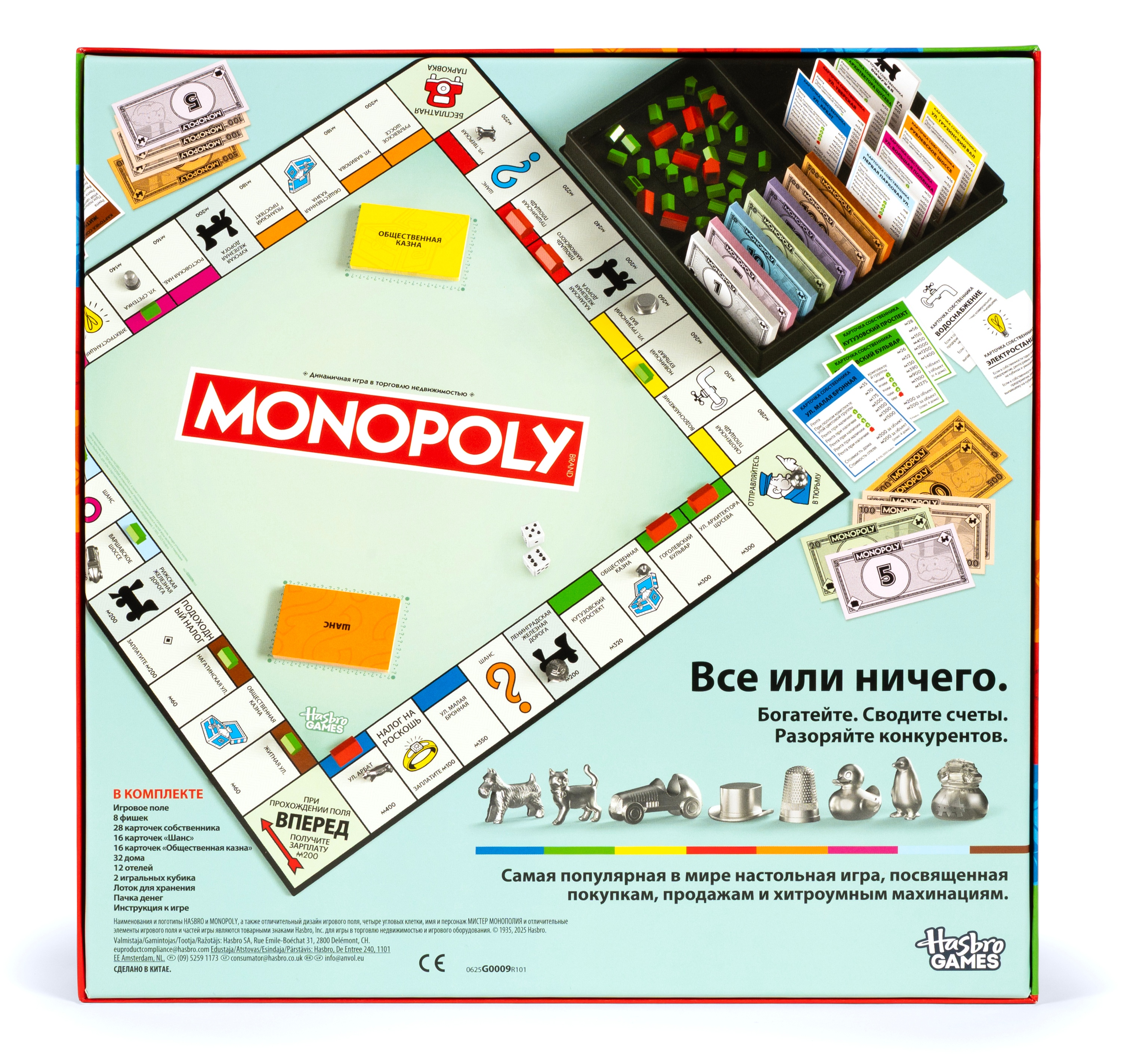 Вкладывайся по-крупному или разорись в настольной игре "Монополия"! В этом издании увлекательной семейной игры тебя ждет классический игровой процесс, который так любят фанаты, плюс улучшенные элементы. Мы добавили элегантный лоток для хранения, чтобы деньги, карточки и компоненты были в порядке. Также увеличили размеры фишек, домов и отелей по сравнению с предыдущими версиями, чтобы с ними было удобнее обращаться. Игроки перемещаются по доске, покупая как можно больше недвижимости. Чем больше их будет, тем больше арендной платы они смогут собрать с других. Побеждает тот, у кого деньги остались последним, когда все остальные игроки обанкротились! Ищешь веселые игры для игрового вечера? Эта семейная настольная игра для детей и взрослых - отличный выбор. Игра представлена на эстонском языке. Игра представлена на русском языке.