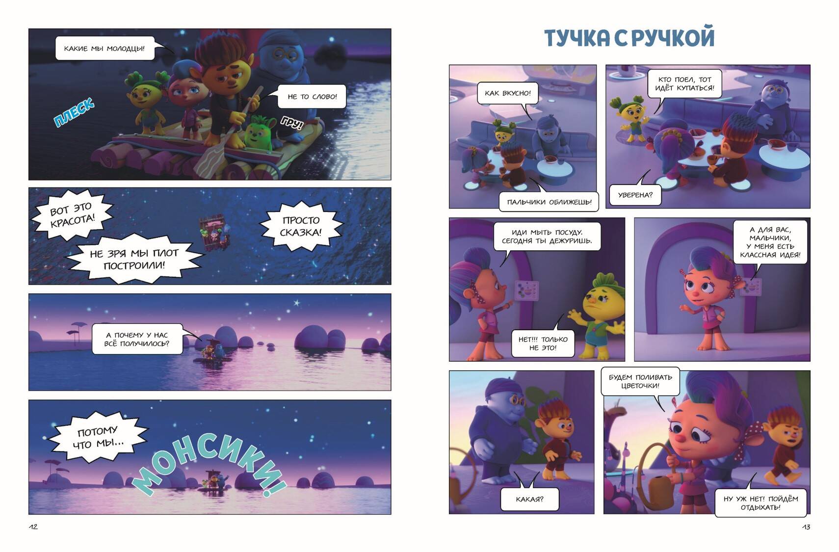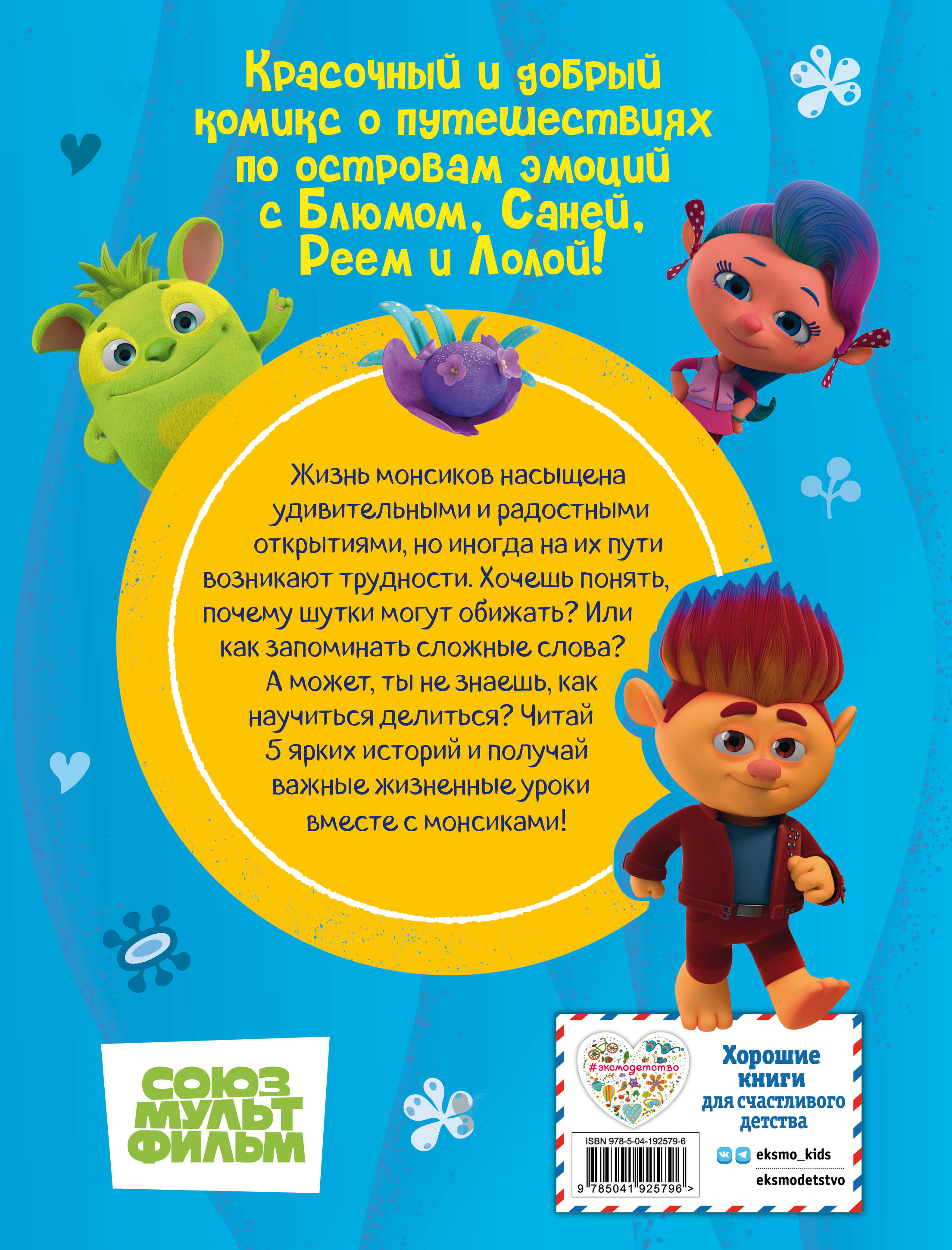 Вторая часть сборника комиксов о приключениях персонажей мультика «Монсики» от известной киностудии «Союзмультфильм»! Взрослея, Рей, Блюм, Саня и Лола всё чаще встречаются со сложными эмоциями и непростыми ситуациями… Но благодаря взаимоподдержке и крепкой дружбе они всегда находят решение любой проблемы. Как научиться делиться вещами и запоминать сложные слова? Почему шутить нужно с осторожностью? Чем может быть полезен страх? Учись читать и познавай свои эмоции вместе с монсиками! Большой формат, мелованная бумага и крупный шрифт сделают чтение для ребёнка не только интересным, но и комфортным.| Издательство | ООО "Издательство "Эксмо" |