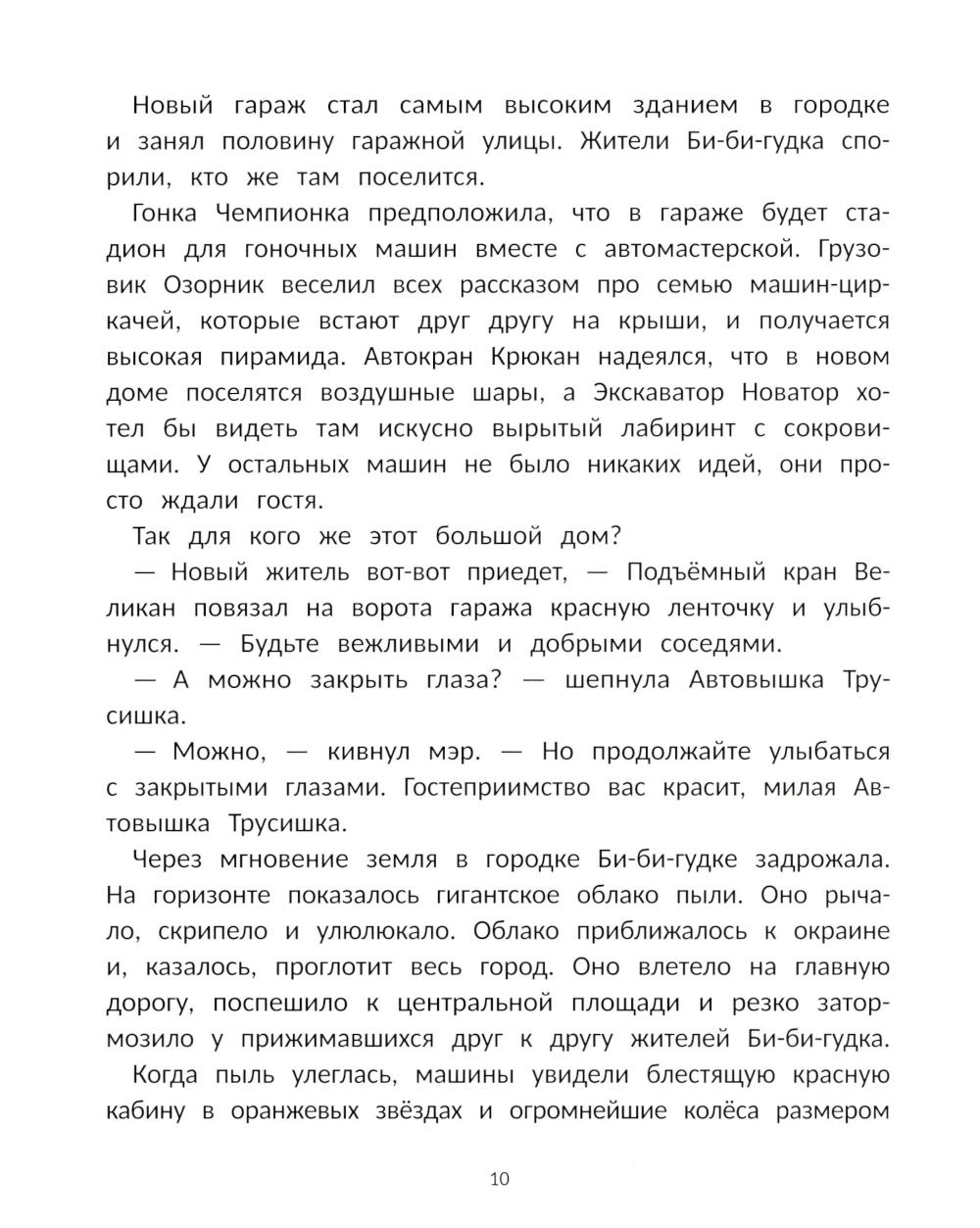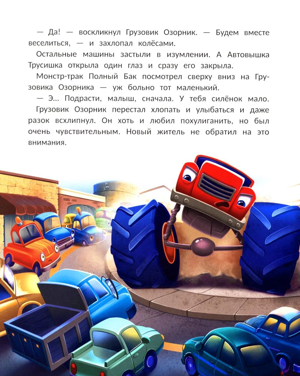 В городке Би-би-гудке у каждой машинки есть любимое дело: Подъёмный кран Великан строит гаражи, Грузовик Озорник привозит стройматериалы, а Автовышка Трусишка меняет уличные фонари. Все они трудятся с радостью, и под их капотами тихо постукивает доброе «тик-так». Но однажды в городке появляется новый житель - Монстр-трак Полный бак. Он целыми днями выделывает акробатические трюки и считает себя самым лучшим из автомобилей. Сможет ли Монстр-трак понять, что чудеса творят не огромные колёса и мощный двигатель, а полезное дело и доброе «тик-так» внутри?| Издательство | Феникс |