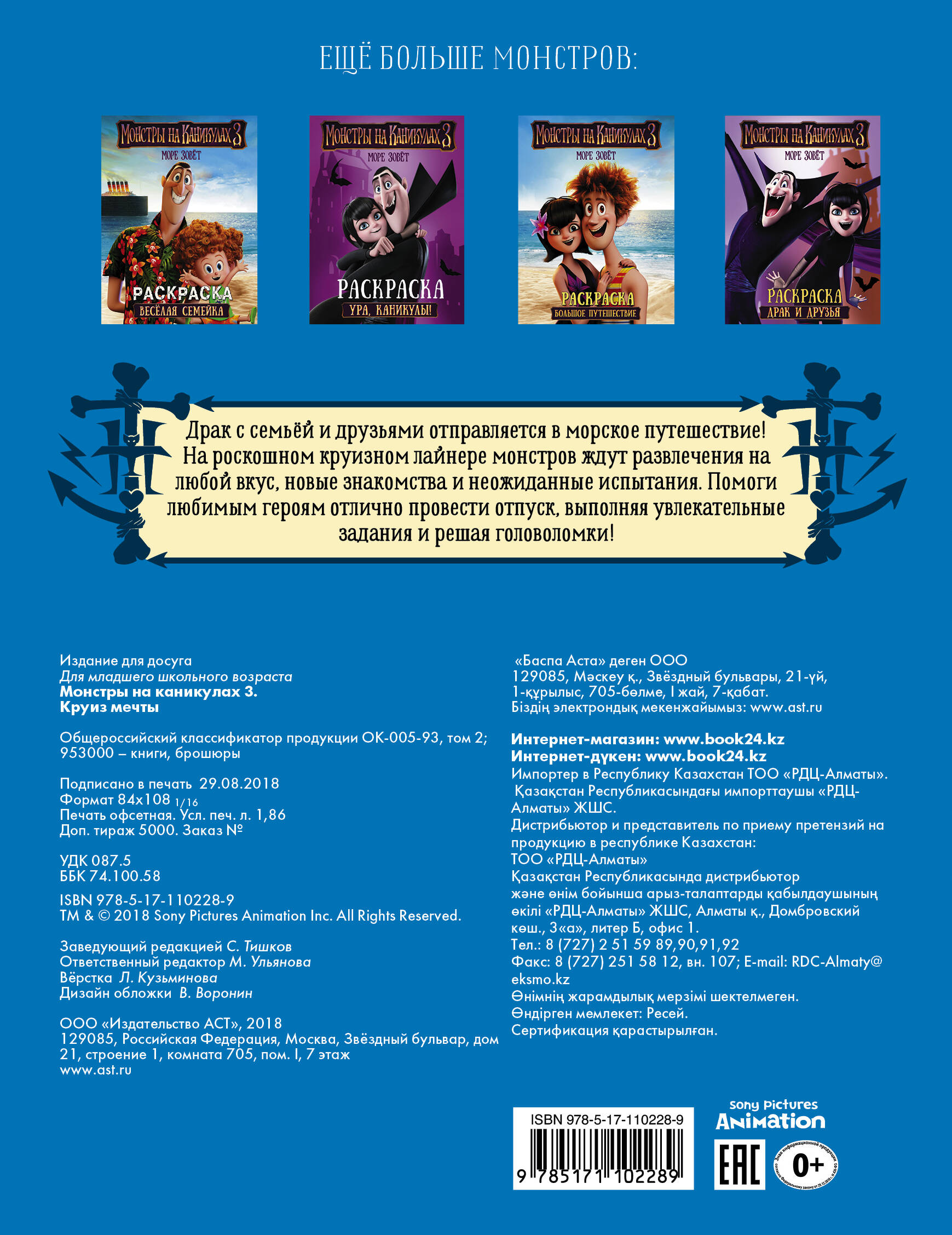 Драк с семьёй и друзьями отправляется в морское путешествие! На роскошном круизном лайнере монстров ждут развлечения на любой вкус, новые знакомства и неожиданные испытания. Помоги любимым героям отлично провести отпуск, выполняя увлекательные задания и решая головоломки!| Издательство | Издательство "АСТ" |