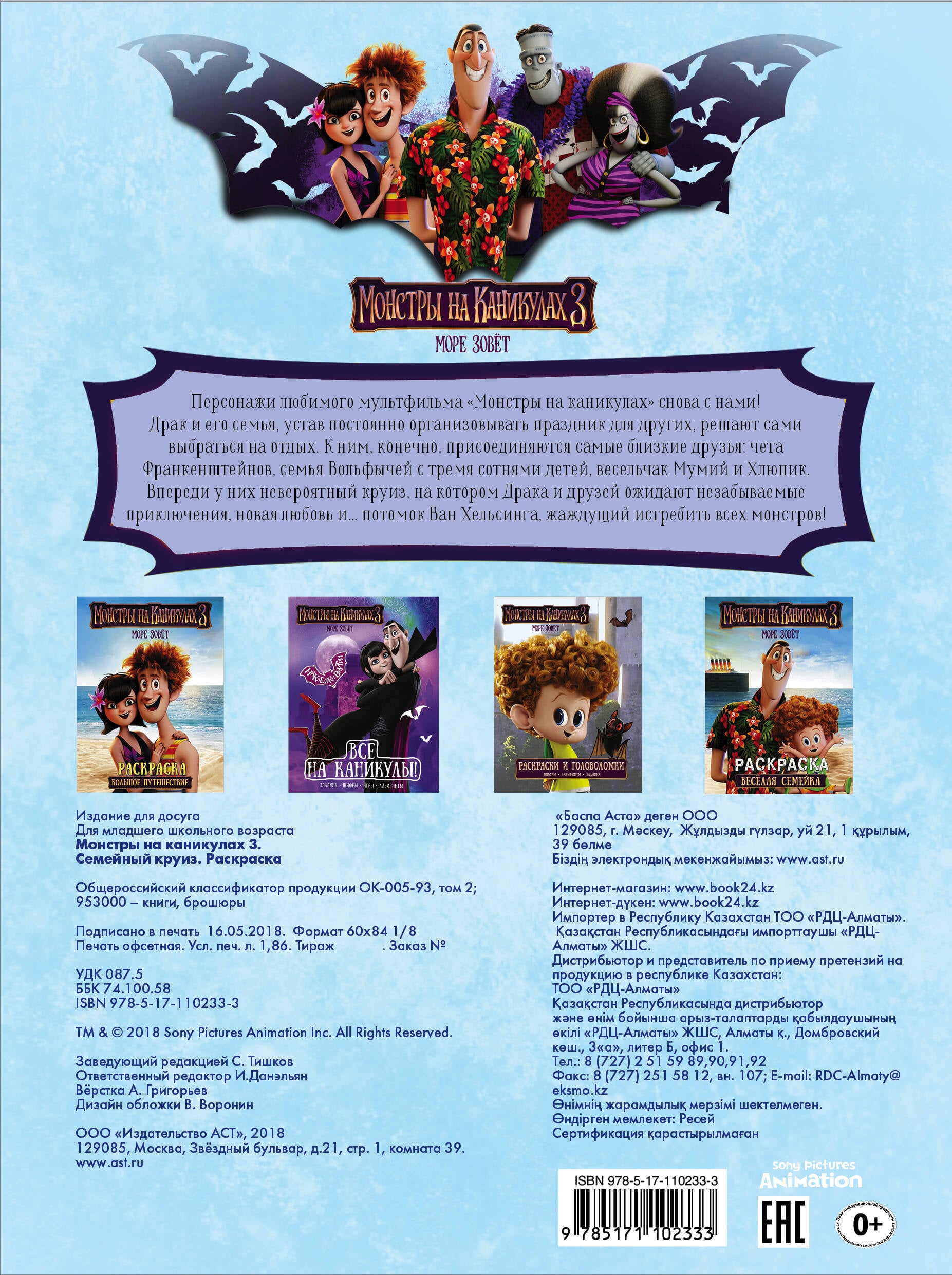 Персонажи любимого мультфильма "Монстры на каникулах" снова с нами! Драк и его семья, устав постоянно организовывать праздник для других, решают сами выбраться на отдых. К ним, конечно, присоединяются самые близкие друзья: чета Франкенштейнов, семья Вольфычей с тремя сотнями детей, весельчак Мумий и Хлюпик. Впереди у них невероятный круиз, на котором Драка и друзей ожидают незабываемые приключения, новая любовь и… потомок Ван Хельсинга, жаждущий истребить всех монстров!| Издательство | ИЗДАТЕЛЬСТВО "АСТ" |