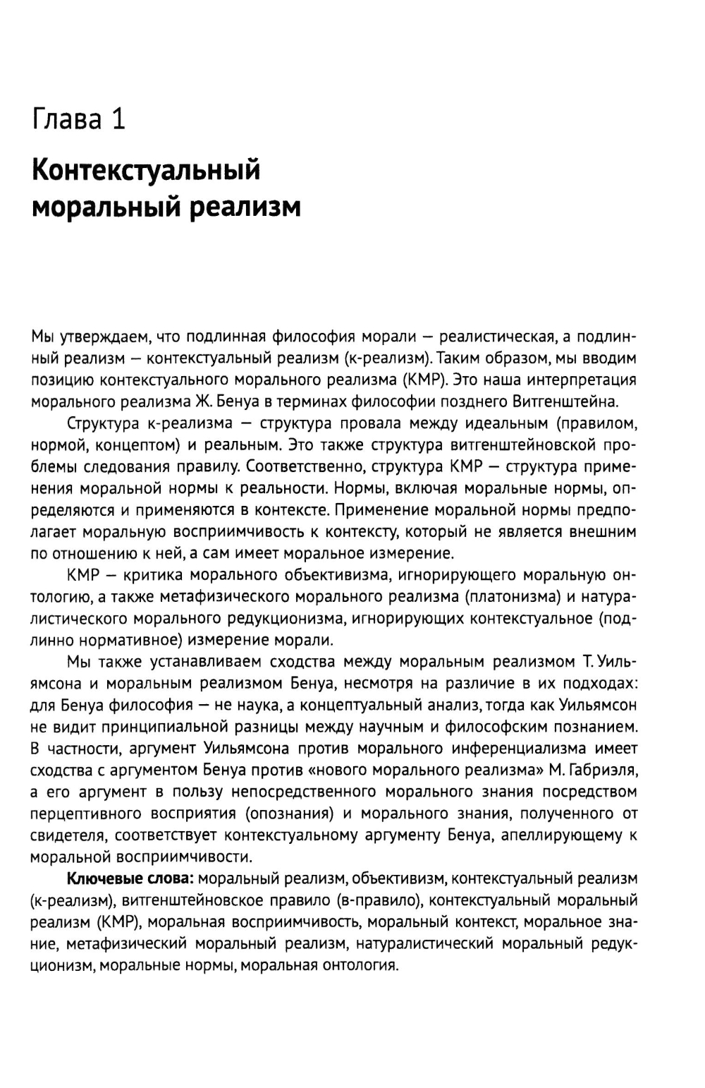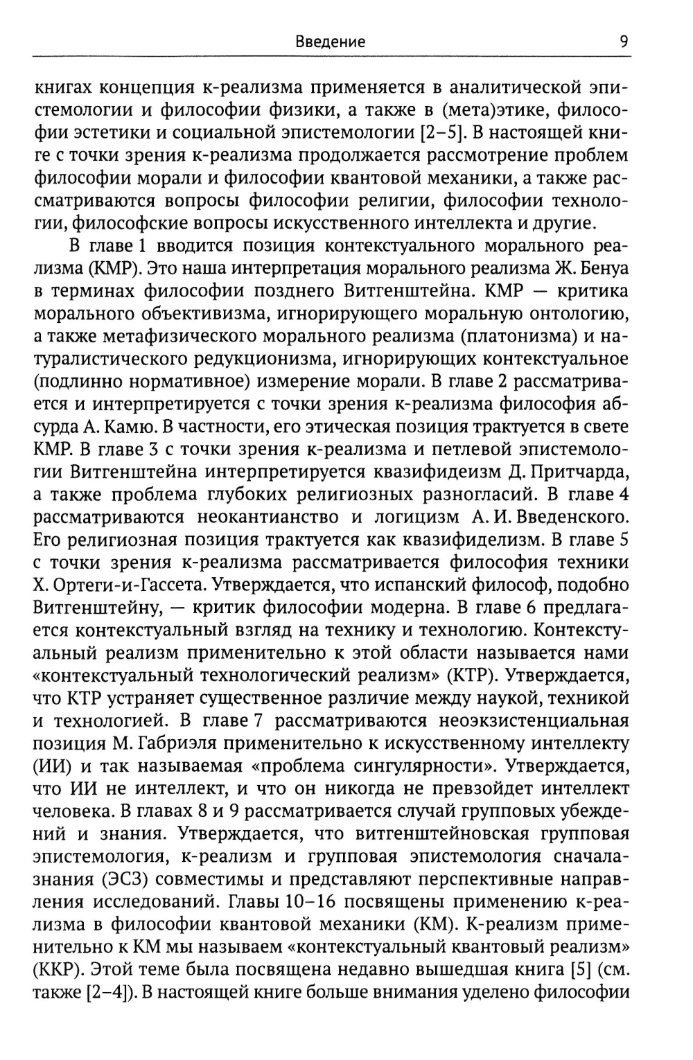 В книге рассматриваются приложения концепции контекстуального реализма в различных областях философии: философии морали, философии религии, эпистемологии, философии науки, философии технологии, философии искусственного интеллекта, философии квантовой механики и других. Вводится и отстаивается позиция контекстуального морального реализма, отвергающая как метафизический моральный платонизм, так и редукционистский моральный натурализм. Предлагается решение проблемы глубоких разногласий: моральных, религиозных, метафизических. Наука и технология рассматриваются с единой точки зрения. Анализируется неоэкзистенциалистский аргумент, согласно которому искусственный интеллект не может превзойти интеллект человека. Рассматривается проблема объективности в квантовой механике. С точки зрения контекстуального реализма интерпретируются философские позиции А. Камю, А. И. Введенского, Х. Ортеги-и-Гассета и Э. В. Ильенкова, философия квантовой механики Н. Бора, а также эффективный и онтический структурный реализмы.