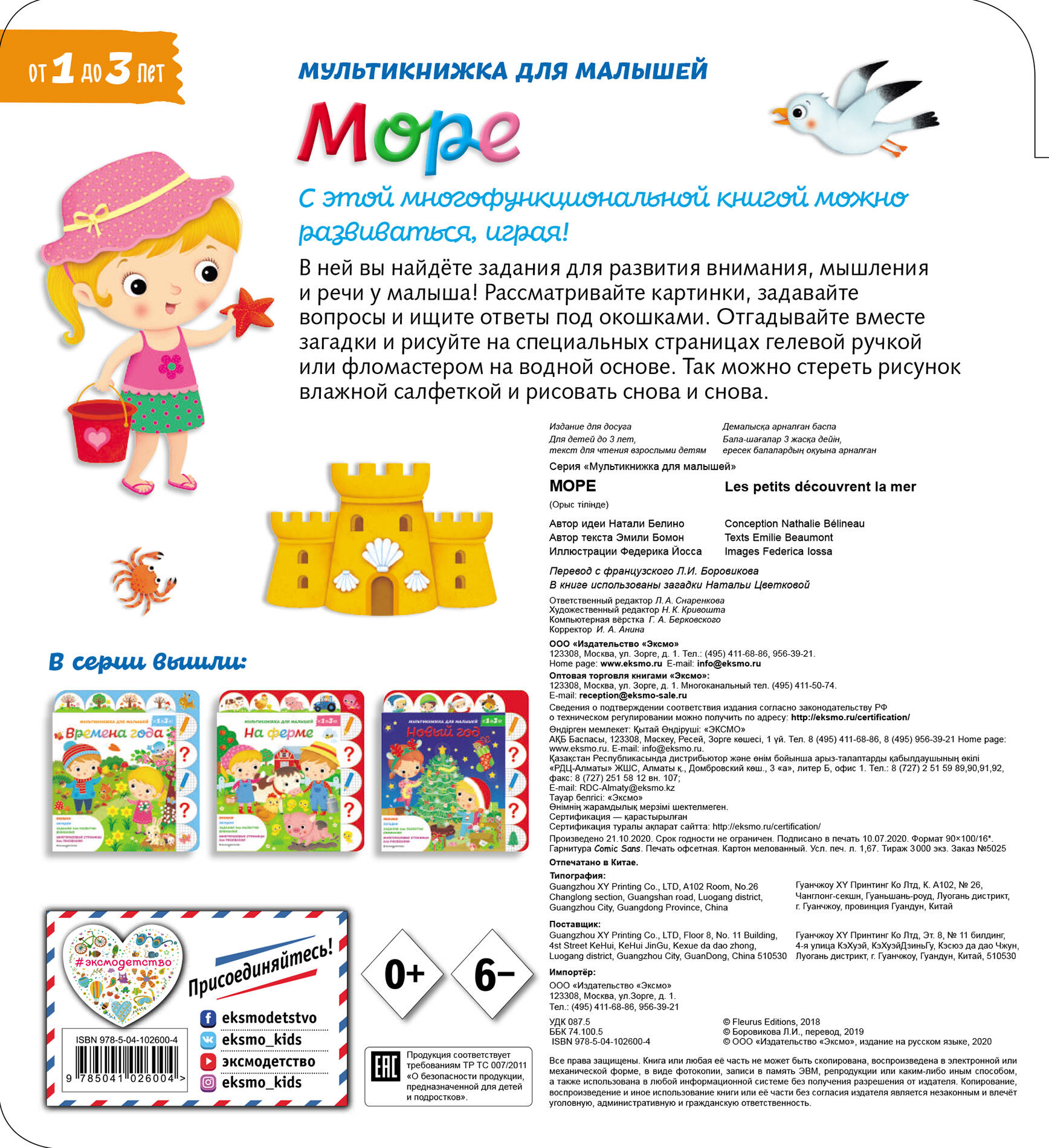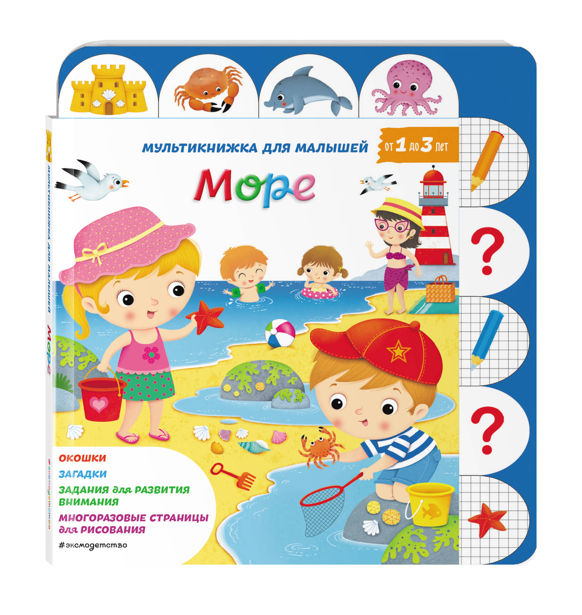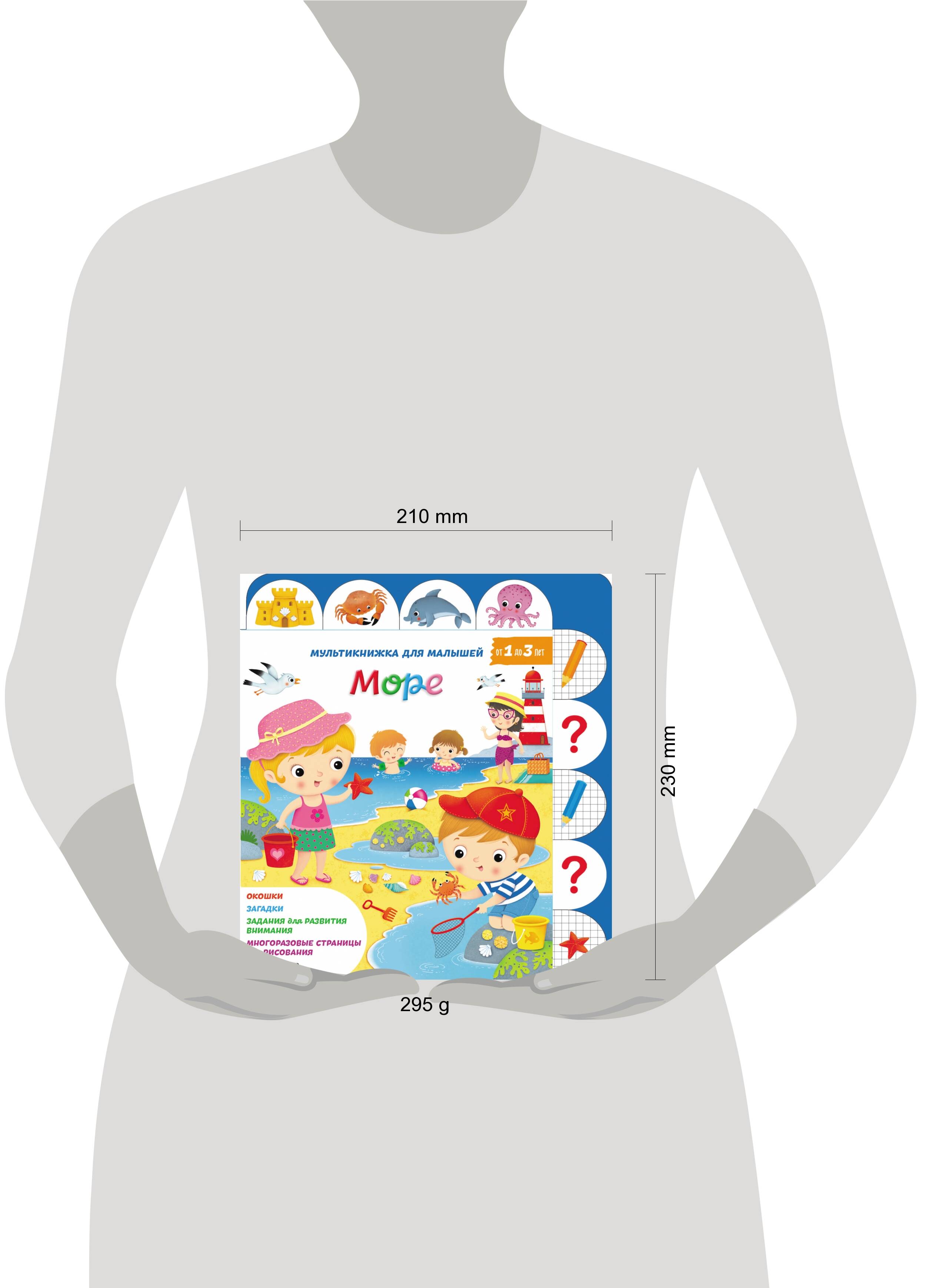 «Море» - это многофункциональная книга, с помощью которой ваш малыш, играя, выучит названия рыб, морских животных и их детенышей, а также узнает о том,кто живет на морском дне и в какие игры можно играть на пляже. В этой мультикнижке вы найдете задания для развития внимания, веселые находилки, рифмованные загадки, окошки, скрывающие ответы на вопросы, а еще специальные многоразовые страницы, на которых можно рисовать гелевой ручкой или фломастером на водной основе. Все нарисованное можно просто стереть влажной салфеткой и рисовать снова и снова. А выбрать нужное вам задание помогут яркие индексы, ведущие на страницы.