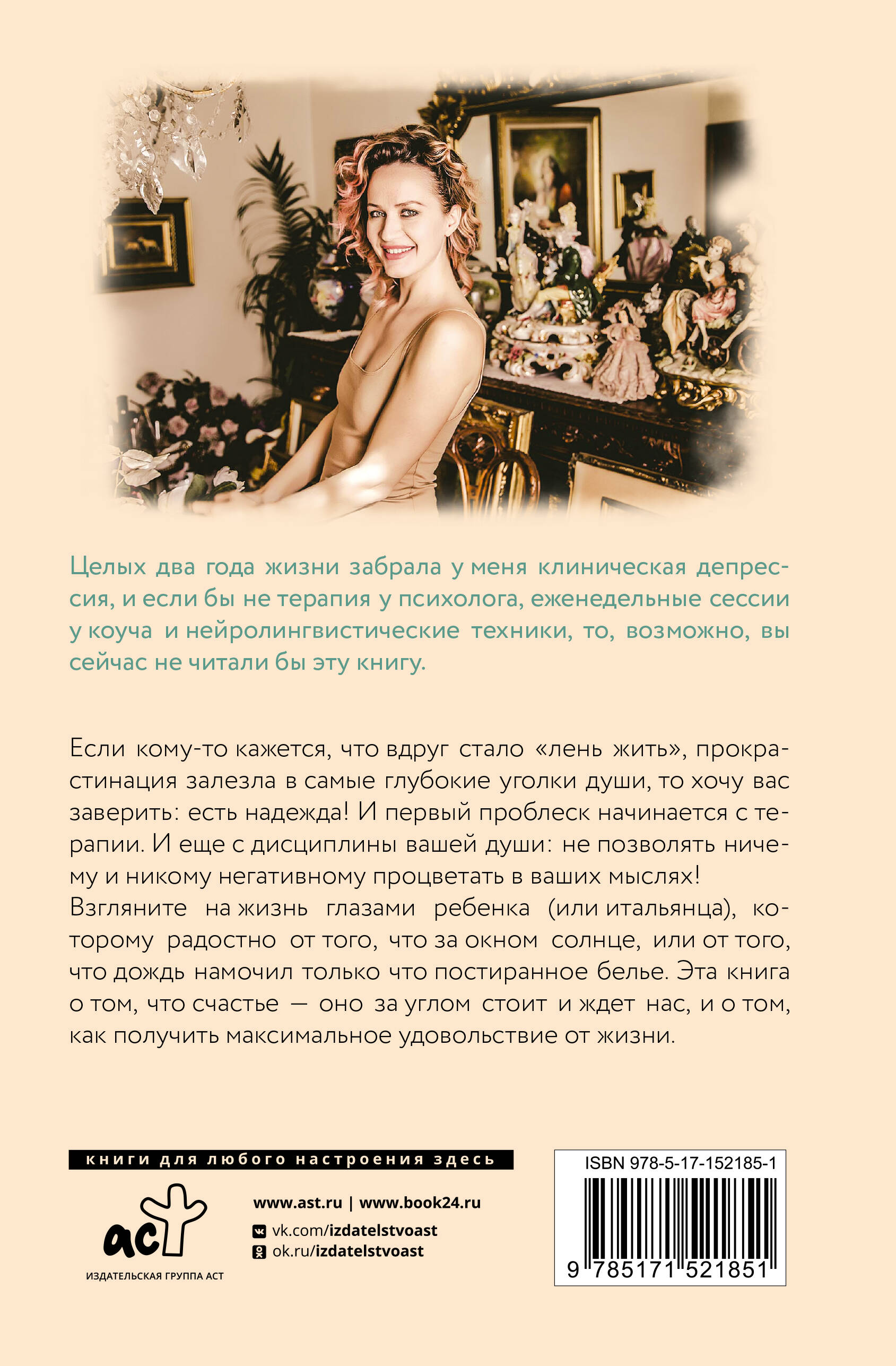 Джулия Эмманс - итальянка русского происхождения, журналист, психолог, лингвист, коуч по счастью и просто неугомонный оптимист. "Целых два года жизни забрала у меня клиническая депрессия, и если бы не терапия у психолога, еженедельные сессии у коуча и нейролингвистические техники, то, возможно, вы сегодня не держали бы эту книгу в руках. Поэтому если кто-то сейчас читает ее в полутемной спальне, и ему кажется, что вдруг стало "лень жить", и прокрастинация залезла в самые глубокие уголки души, то хочу вас заверить: лучшее впереди! Не позволять ничему и никому негативному процветать в ваших мыслях! Все начинается именно в ней: в вашей голове, с вашей картины мира. Взгляните на жизнь глазами ребенка, которому радостно от того, что за окном солнце, или от того, что дождь намочил только что постиранное белье. Будьте избирательны с тем, что попадает в вашу светлую голову! Потому что именно с нее начинается все в вашей жизни! Главная цель этой книги - максимально повысить количество эндорфинов в крови у каждого читателя! Эта книга о том, что счастье - оно за углом стоит и ждет нас, об итальянцах и их секретах долголетия, об образе жизни dolce vita и о том, как получить максимальное удовольствие от жизни. Моим итальянским героям больше 60 лет, и они все были рады поделиться жутко секретной информацией со мной, русской иммигранткой, исследующей тему итальянской "феличиты" и их ежедневных беспричинных улыбок! Вместе с этим, благодаря моим исследованиям и экспериментам в области нейрокоучинга в некоторых главах этой книги появились практические рекомендации, следуя которым вы станете счастливее на целую жизнь".
