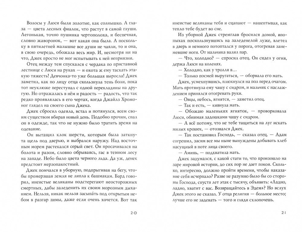 Это было так давно, что свидетельства о происходивших тогда событиях сохранились разве что в мифах и легендах. В те времена на свете жили чародеи, в лесах водились диковинные звери и птицы, а гигантские тролли наводили ужас на простых смертных. В те времена и драконов можно было повстречать в укромных долинах. Джек родился в маленькой саксонской деревне на островном побережье и, вероятно, прожил бы самую обычную, ничем не примечательную жизнь, если бы его не взял в ученики Бард - друид из Ирландии, известный под прозвищем Драконий Язык. С того самого момента и начинаются удивительные приключения Джека, захваченного в плен свирепыми викингами и ради спасения сестры совершившего полное опасностей путешествие на север, в Ётунхейм, королевство троллей, к исполинскому древу Иггдрасиль, у корней которого прячется магический источник Мимира. Американская писательница Нэнси Фармер получала широкую известность после публикации книги «Дом Скорпиона», удостоенной Медали Джона Ньюбери. Национальной книжной премии и ряда других престижных наград. «Морем троллей» открывается трилогия-фэнтези, куда входят также романы «Земля Серебряных Яблок» и «Острова Блаженных». Для среднего школьного возраста.| Издательство | Волчок |