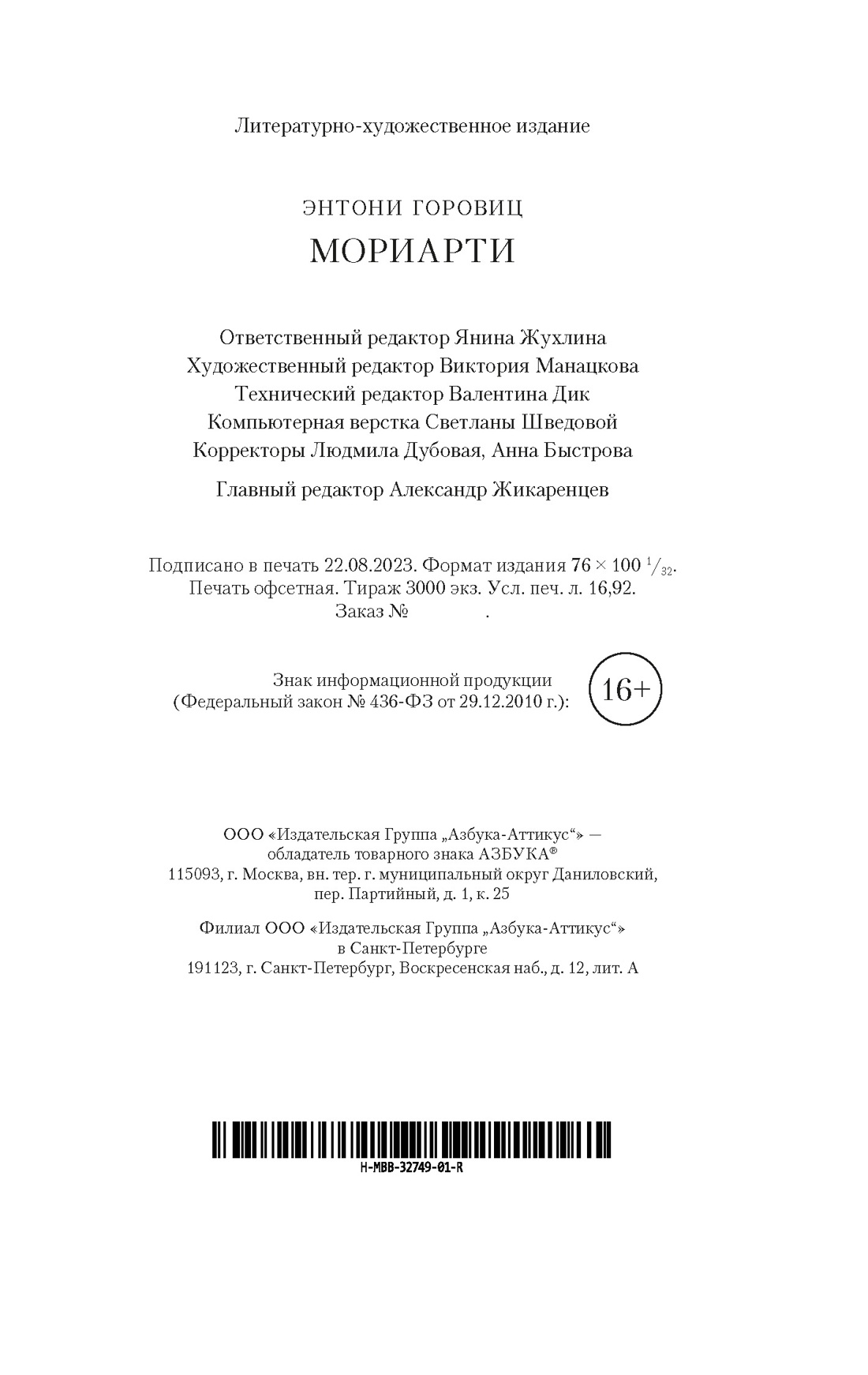В литературном и кинематографическом мире нет более популярного героя, чем Шерлок Холмс. Это имя стало сенсацией в 1890-х благодаря публикациям в журнале «Стрэнд», тиражи которого сразу выросли на треть. По числу экранизаций история о детективе с Бейкер-стрит попала в Книгу рекордов Гиннесса. О количестве литературных пастишей и говорить нечего, но официальное одобрение Фонда наследия Конан Дойла получил только Энтони Горовиц за свой роман «Дом шелка». И спустя три года после выхода этой книги Энтони Горовиц вернулся в мир великого сыщика. После того как профессор Мориарти исчез в бурных водах Рейхенбахского водопада, в преступном мире образовалась «вакансия». Среди многочисленных претендентов на это место возникает поистине зловещая фигура. Детективному агенту из Нью-Йорка и инспектору Скотленд-Ярда - преданному поклоннику Шерлока Холмса - предстоит проложить путь через самые темные уголки столицы Англии, от элегантных площадей Мейфэра до причалов и закоулков лондонских доков, в погоне за тем, кто решительно заявляет о своих правах в качестве преемника Мориарти...| Издательство | Азбука |