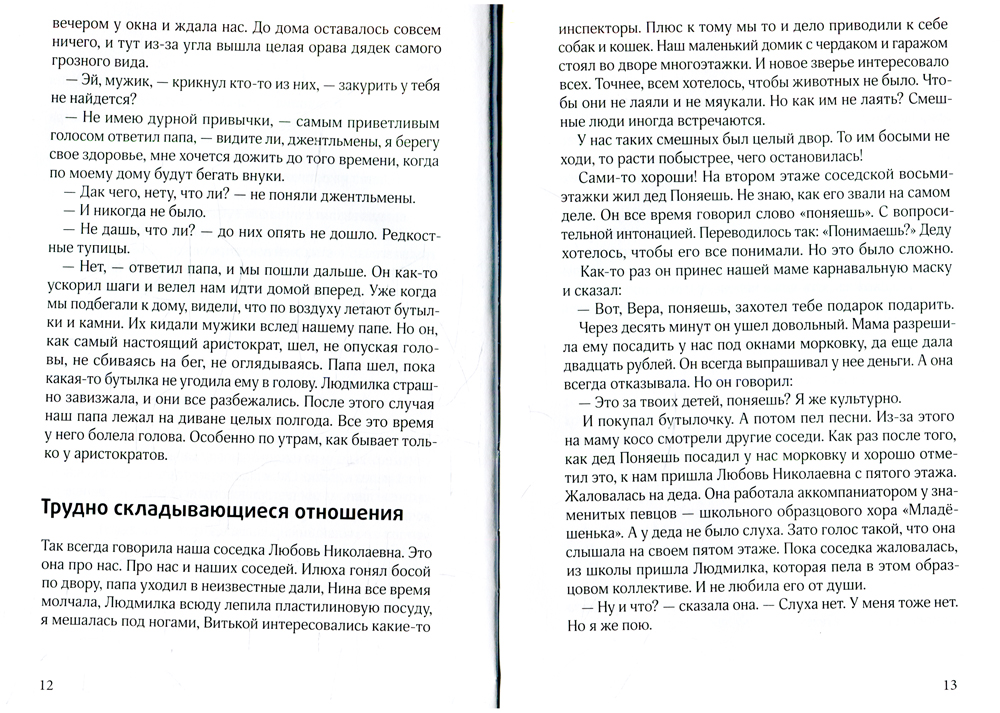 «Мороженое в вафельных стаканчиках» Марии Ботевой - это сборник, состоящий из трех пронзительных и удивительно честных повестей о жизни подростков. Герои повести «Мороженое в вафельных стаканчиках» - необычная семья, чей дом открыт каждому, кому трудно жить в большом мире. Дети и взрослые могут в любой момент уехать - к морю, на край света, в неизвестные дали... А потом обязательно возвращаются - туда, где их любят и ждут. Одноклассники из «Школы на Спичке» вместе делают важное открытие: спасти других можно, лишь научившись понимать самих себя. А смешная и трогательная девочка, рассказчица повести «Место празднику» знает, какой хрупкой может быть человеческая душа, - и громко произносит: «Да здравствует сердце!» Об этой книге очень сложно рассказывать - настолько ее герои и обстоятельства, в которых они оказываются, не похожи между собой. Ее нужно просто читать. Читать, останавливаясь, задумываясь, возвращаясь к предыдущим страницам, улыбаясь или с трудом сглатывая комок в горле. Чтобы потом почувствовать, что открыл для себя нечто важное. Книга «Мороженое в вафельных стаканчиках» в 2013 году вошла в список лучших книг года от интернет-ресурса «Библиогид», в лонг-лист премии «Кни-гуру» и получила специальный приз премии им. В. Крапивина. А в 2014 г. вошла в список выдающихся детских книг мира «Белые вороны», составляемый Мюнхенской международной детской библиотекой.| Издательство | ИД КомпасГид |