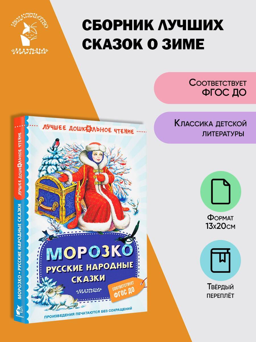 В книгу "Морозко" вошли лучшие русские народные и авторские сказки о зиме, главные герои в которых - животные и люди. Простофиля серый волк, хитрая лиса, добрый зайчишка, а также Снегурочка, Морозко и многие другие герои волшебных зимних сказок ждут ребят на страницах этой книги. В каждой сказке - народная мудрость, рассказывающая детям о том, как хорошо любить труд, уметь дружить и защищать слабых. Любимые герои, классические сюжеты, объединённые темой самого снежного и весёлого времени года - зимы, обязательно запомнятся и станут любимыми у юных читателей. Для дошкольного возраста.| Издательство | Издательство "АСТ" |