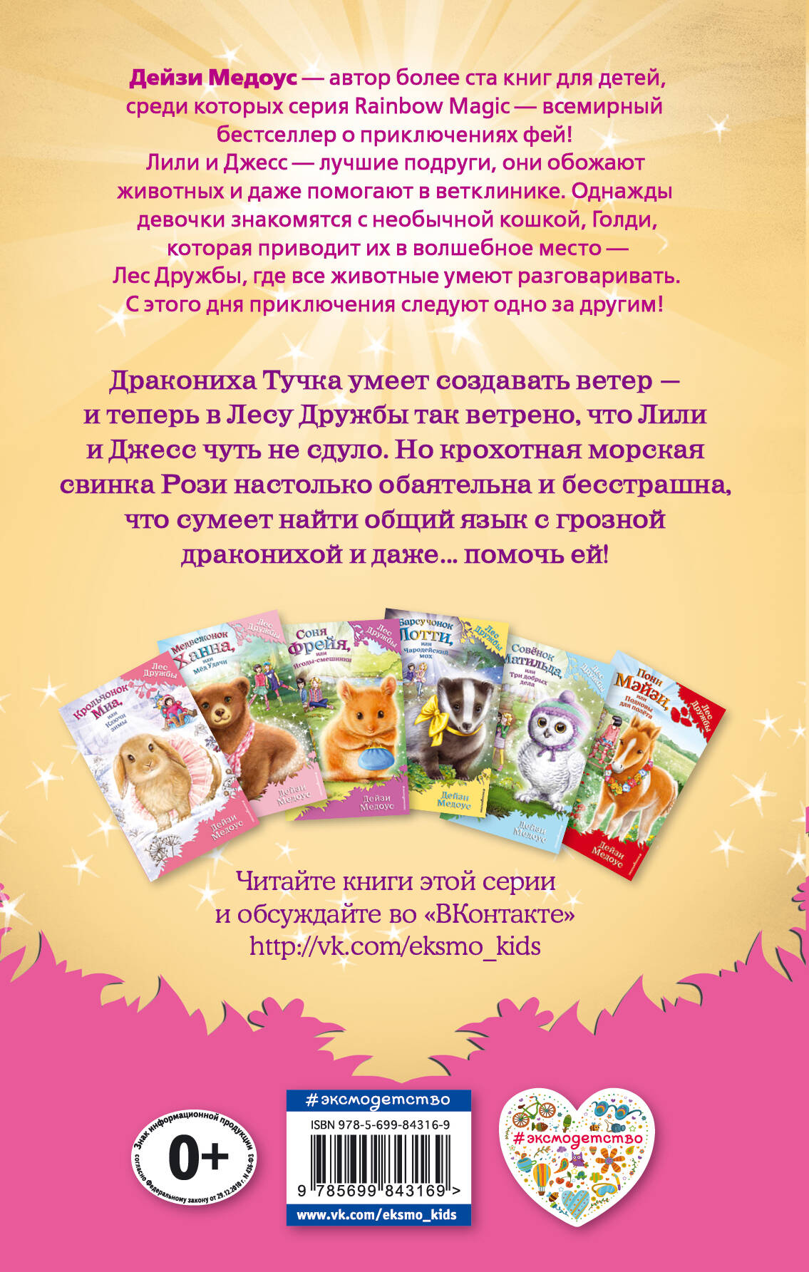 Это история про волшебную мельницу, семейство морских свинок, которые ею управляют, и настоящего дракона (только маленького!). Лили и Джесс - девочки из нашего мира, они обожают животных и однажды оказываются в волшебном Лесу Дружбы, где все животные умеют разговаривать! Но никакое волшебство не поможет, если сама не постараешься и не научишься быть отзывчивой и ответственной. Книги про Лес Дружбы известной британской писательницы Дейзи Медоус очень популярны в России. Интересная история понравится как тем детям, которые уже любят читать, так и тем, у которых навыки чтения ещё не закрепились. В издании крупный шрифт, прелестные чёрно-белые иллюстрации и красивая обложка с двумя видами лака - глиттером и глянцевым.| Издательство | ООО "Издательство "Эксмо" |