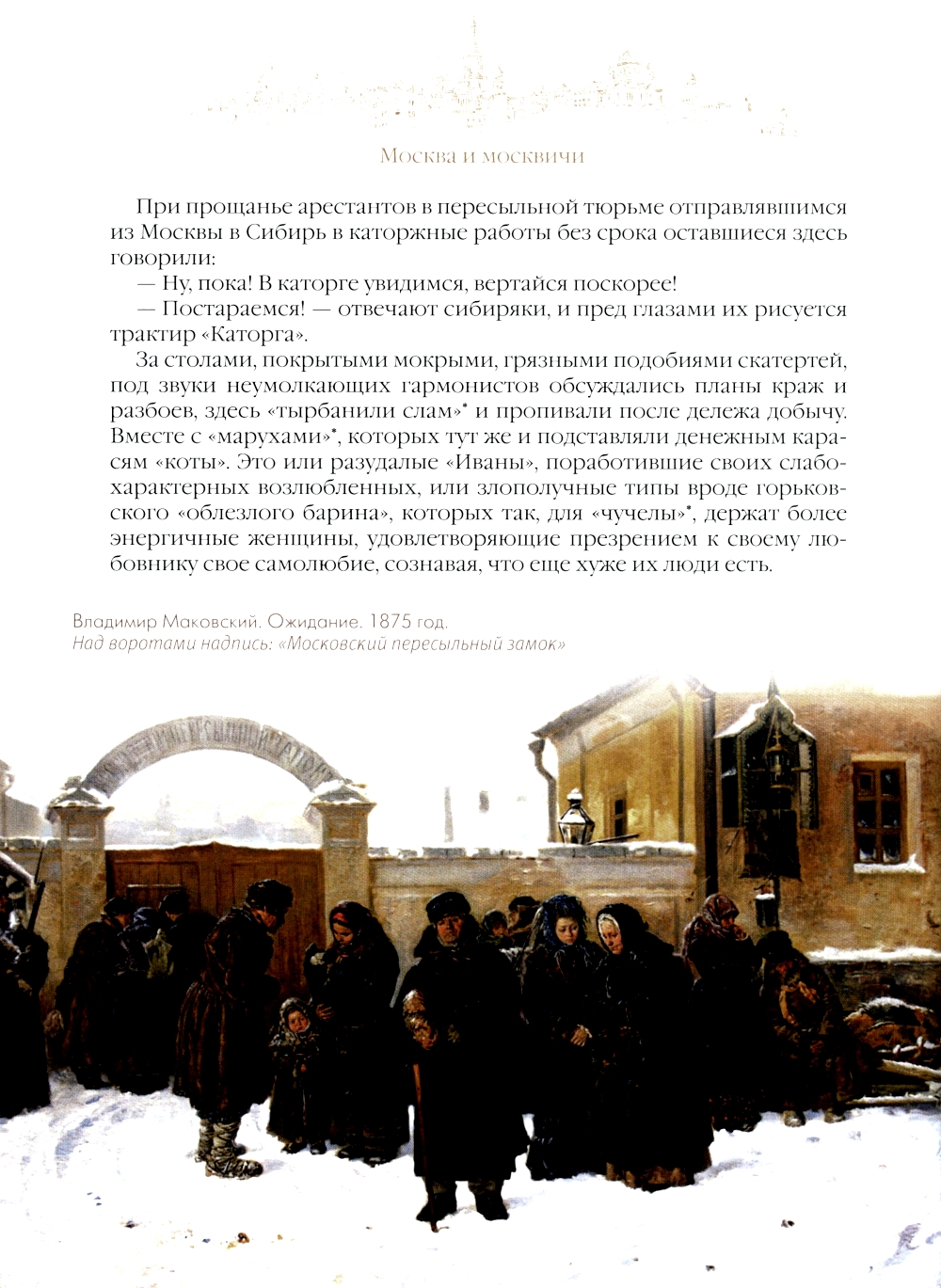 Впервые с 1926 года знаменитая книга Владимира Гиляровского «Москва и москвичи» издается в первоначальной авторской редакции. Это произведение является одним из драгоценнейших хранилищ памяти о прошлом российской столицы. Ни у одного из бытописателей не найдется столь же яркого, наполненного живыми подробностями описания трущоб и полных редчайших сокровищ блошиных рынков, затрапезных трактиров и роскошных ресторанов 70-80-х годов позапрошлого века - того времени, когда автору довелось много бывать в этих местах, встречаться и общаться с их колоритными обитателями и завсегдатаями. Знакомство с первоначальной редакцией этой книги даст новые впечатления, более богатые по сравнению с теми, которые возникают при чтении ее варианта, считающегося каноническим. Книга снабжена словарем жаргонных слов и выражений, а также большим количеством иллюстраций: архивными фотографиями, рисунками из периодики, произведениями изобразительного искусства, запечатлевшими типы и сцены ушедшей навсегда натуры.| Издательство | Просвещение-Союз |