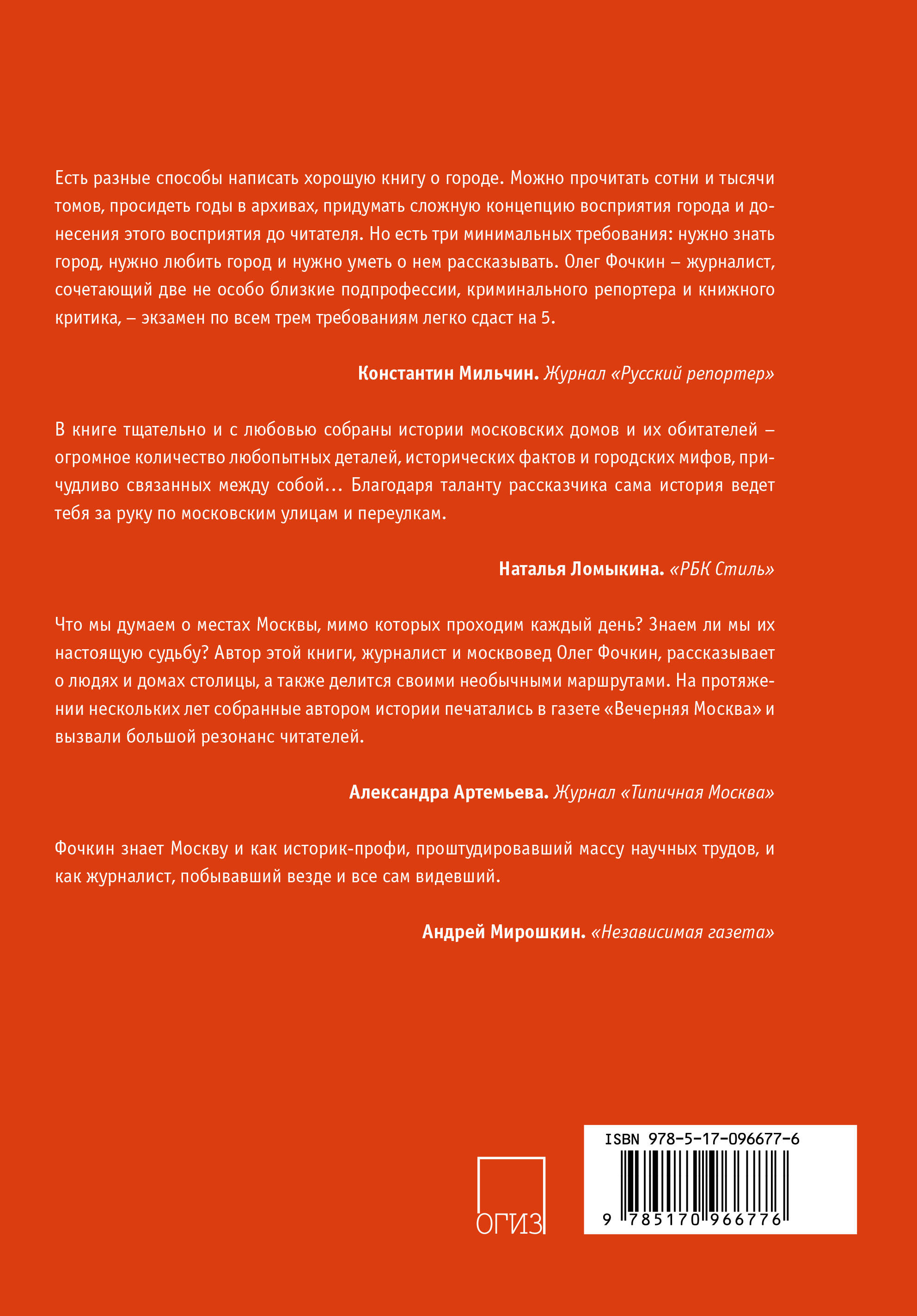 Москва меняется день за днем. Не всегда так, как надо или как мы себе представляем. И то, каким город будет дальше, зависит от каждого из нас, но без знания истории мы не сможем идти дальше. Любопытными и значимыми историческими фрагментами жизни Москвы делится с читателем в своей книге журналист и краевед Олег Фочкин. На ее страницах столица предстает в совершенно новом ракурсе, овеянная легендами и облаченная в ускользающую красоту архитектуры.| Издательство | ИЗДАТЕЛЬСТВО "АСТ" |