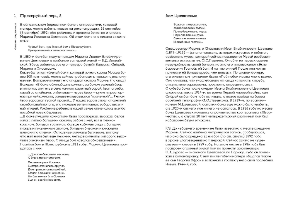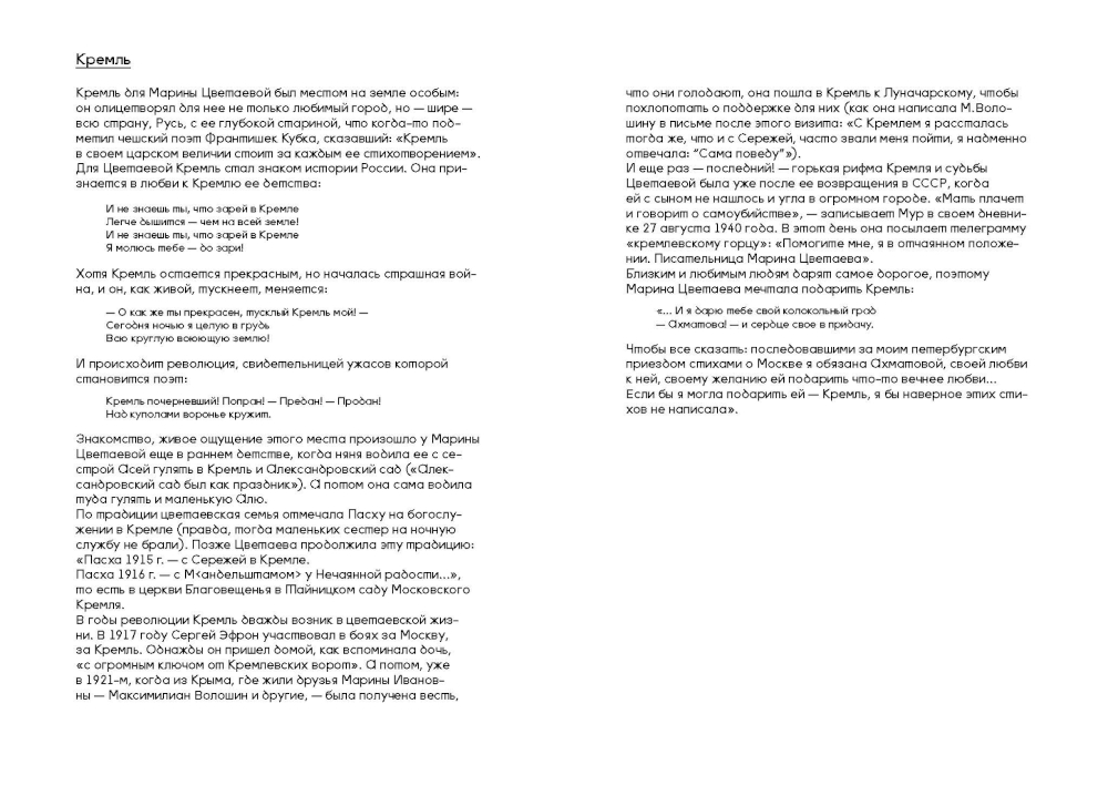 Издание предлагает экскурсию по цветаевским местам Москвы. Каждое такое место (а их выбрано 60) так или иначе связано с биографией поэта. В каких-то домах жили близкие ей люди, в каких-то театрах на спектаклях она бывала, а где-то - выступала. Здания, о которых идет речь в путеводителе, становятся своеобразной ариадновой нитью, ведущей любителя поэзии Марины Цветаевой по ее жизни - от рождения до отъезда в начале войны в эвакуацию. Текстовой материал книги составили фрагменты писем и очерков самой Цветаевой, дневниковых записей ее детей - Али и Мура, а также мемуаров ее современников - участников происходивших событий. Текст дополняет визуальный ряд - редкие архивные фотографии и снимки современного вида исторических зданий.| Издательство | Бослен |