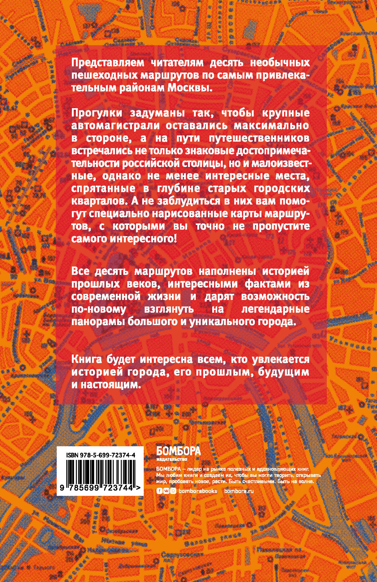 Это действительно новое издание знаменитого путеводителя «Москва пешком». В нем вы найдете десять необычных пешеходных маршрутов по самым привлекательным районам столицы и специально нарисованные для них карты с обозначением всех главных объектов, на которые стоит обратить внимание. Прогулки задуманы так, чтобы крупные автомагистрали оставались максимально в стороне, а на пути путешественников встречались не только знаковые достопримечательности российской столицы, но и малоизвестные, однако не менее интересные места, спрятанные в глубине старых городских кварталов. Все десять маршрутов наполнены историей прошлых веков, интересными фактами из современной жизни и дарят возможность по-новому взглянуть на легендарные панорамы большого и уникального города. Книга будет полезна всем, кто интересуется историей города, его прошлым, будущим и настоящим.| Издательство | Эксмо |