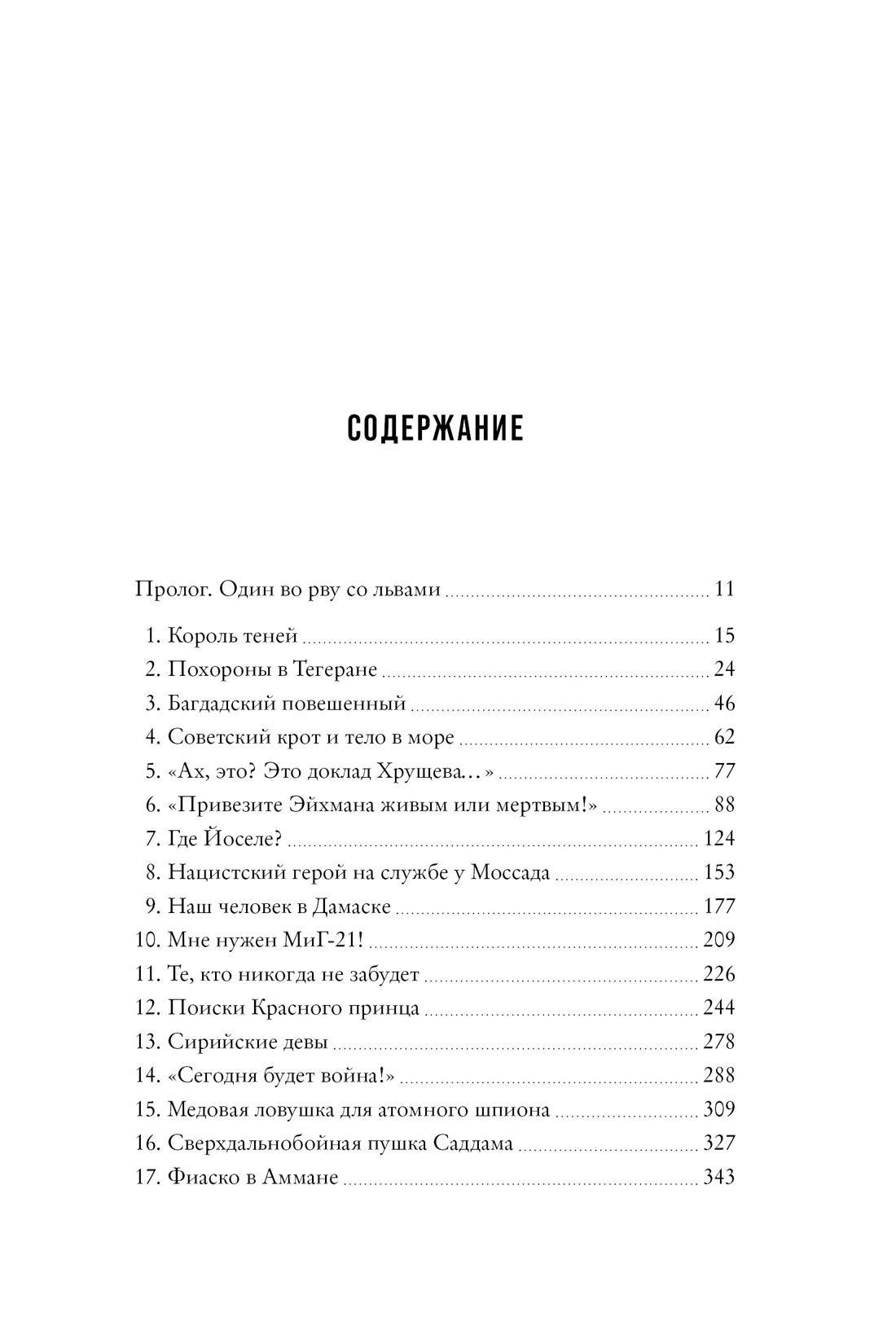 Книга основана на многолетних исследованиях и интервью с израильскими лидерами и оперативниками Моссада. Авторы, имеющие доступ к секретной информации, рассказывают о важнейших операциях Моссада и о его сотрудниках, чья работа вошла в анналы истории спецслужб. «Со времен своего создания более 60 лет назад Моссад ведет бесстрашную тайную борьбу с опасностями, угрожающими Израилю. В процессе борьбы с терроризмом Моссад с 1970-х годов захватывает и ликвидирует десятки известных террористов в их опорных пунктах в Бейруте, Дамаске, Багдаде и Тунисе и на боевых постах в Париже, Риме, Афинах и на Кипре. Безымянные бойцы Моссада - главный источник его жизненной силы. Это мужчины и женщины, которые рискуют своей жизнью, живут вдали от семей под вымышленными именами, проводят отважные операции во враждебных государствах, где малейшая ошибка грозит арестом, пытками или смертью. В этой книге мы рассказываем о великих операциях и о самых отважных героях Моссада (равно как и об ошибках и провалах, которые не раз бросали тень на репутацию разведывательной службы). Эти операции предопределяли судьбу Израиля и во многих отношениях судьбы всего мира». (Михаэль Бар-Зохар, Нисим Мишаль)| Издательство | КоЛибри |