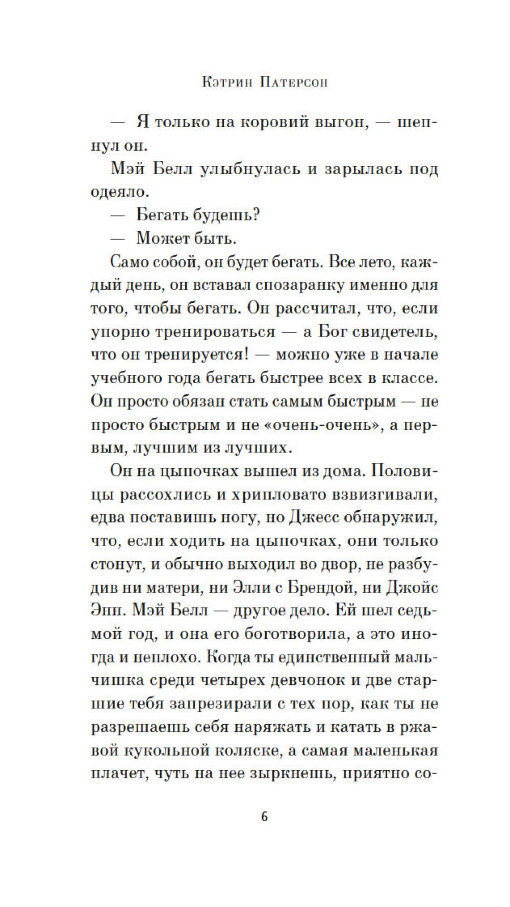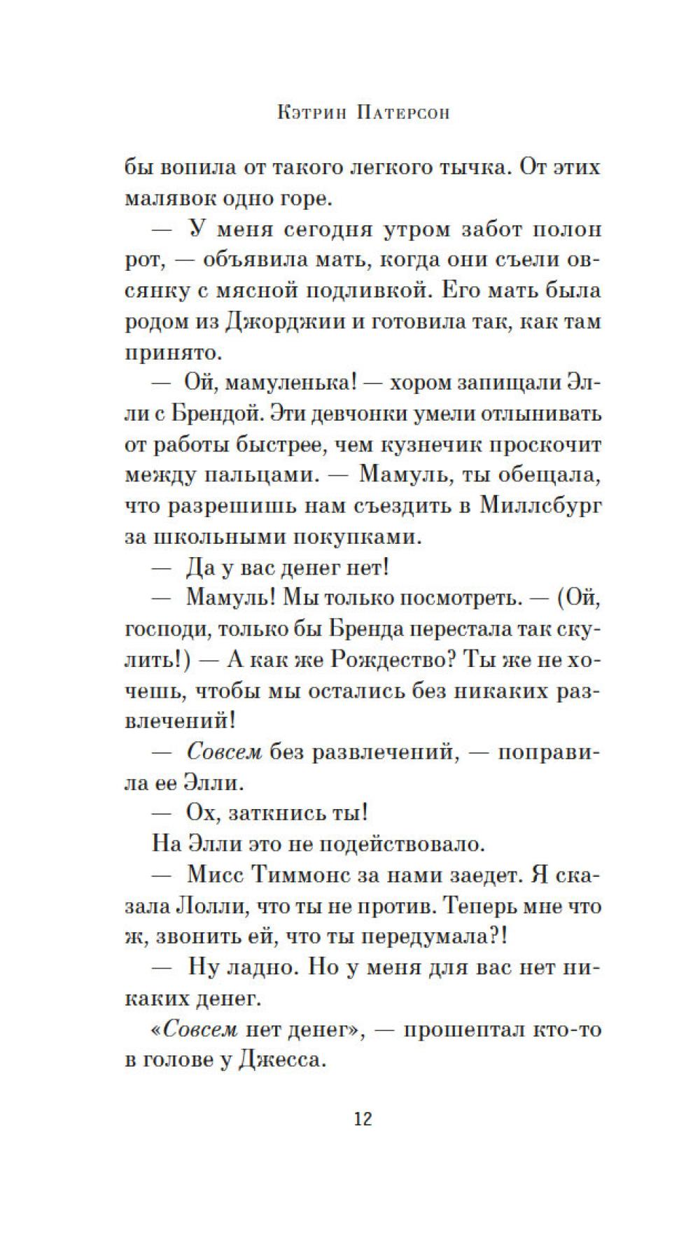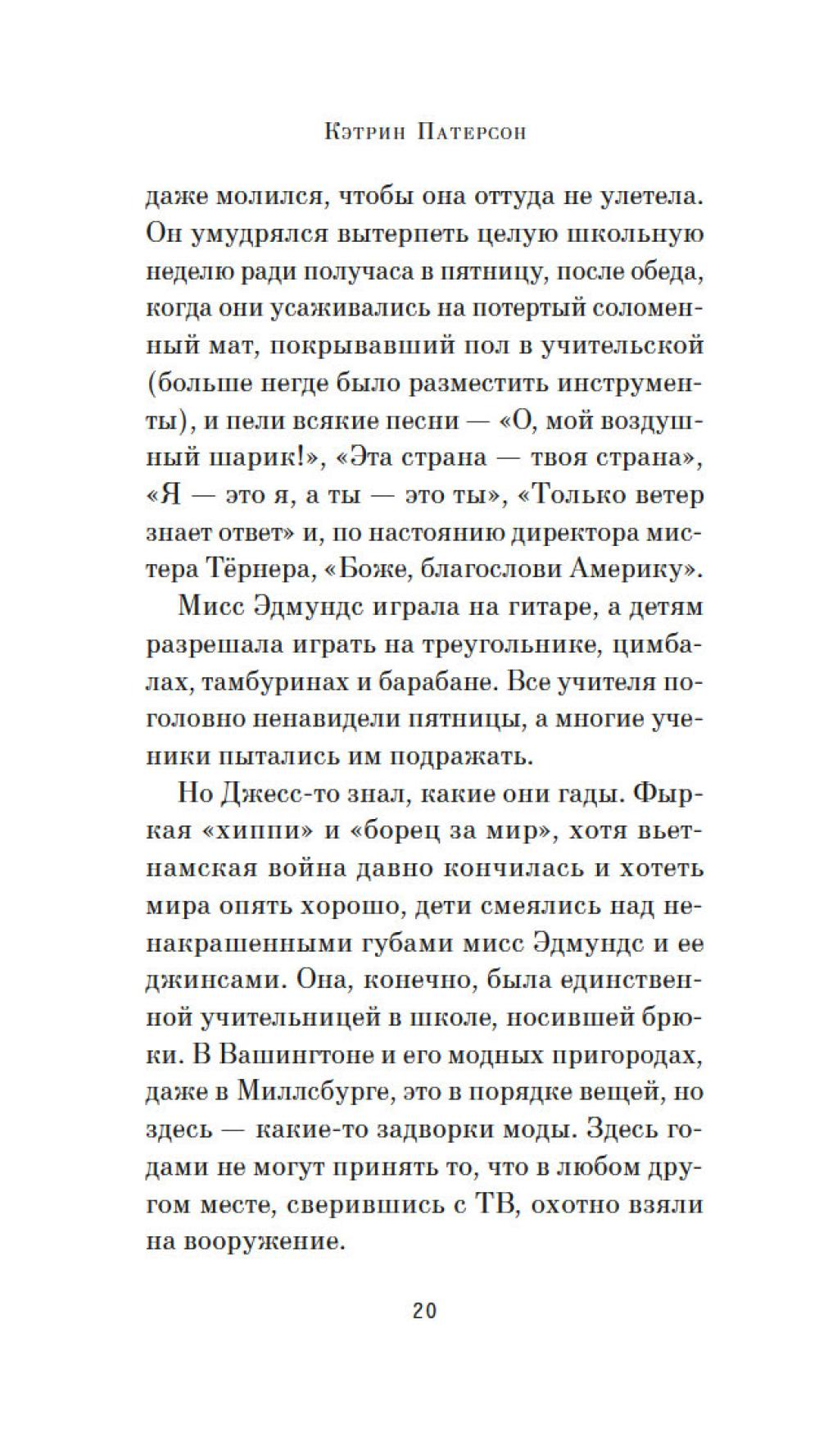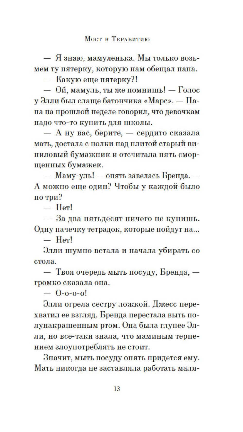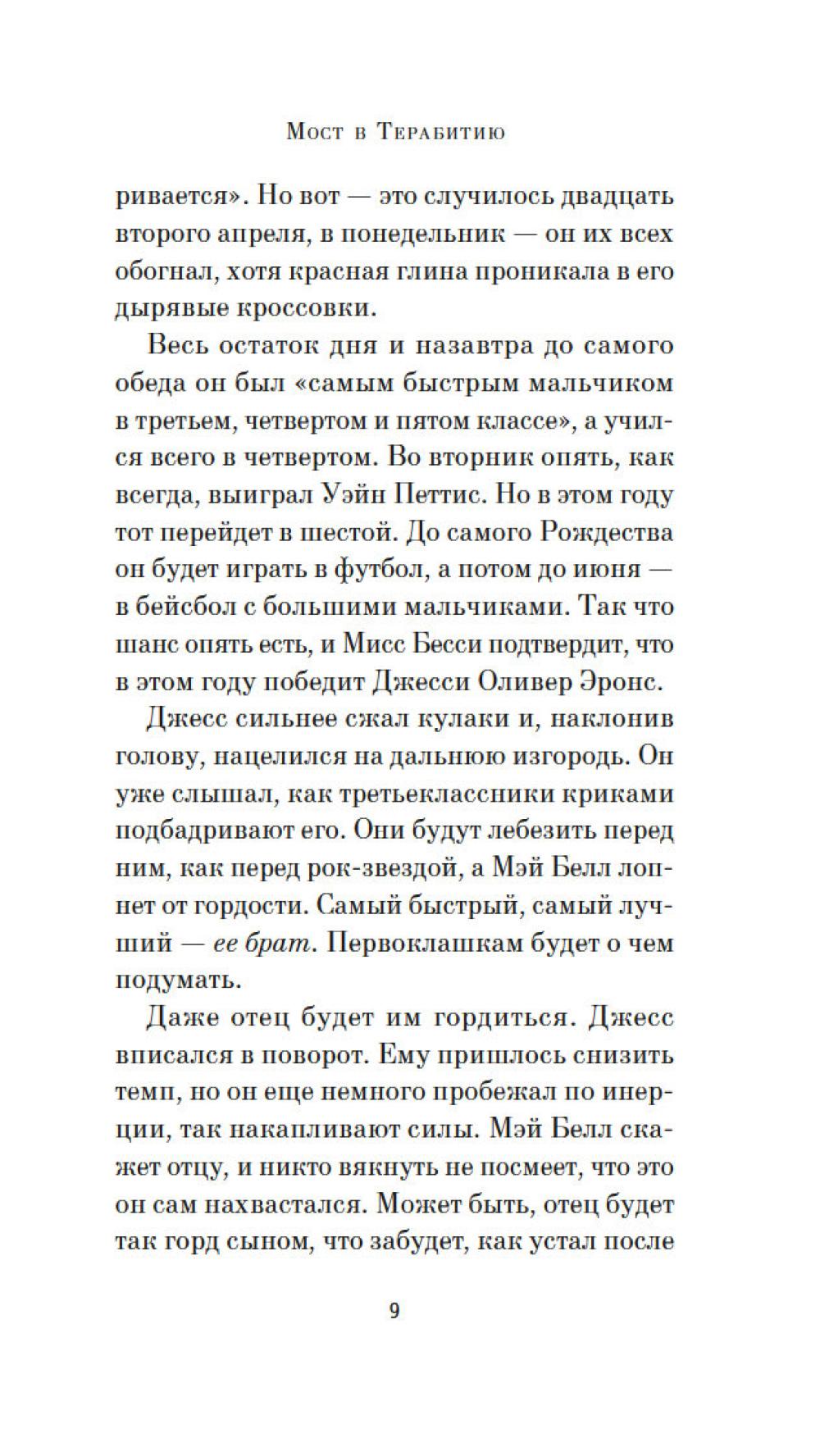 Десятилетний Джесси Эронс здорово рисует, только мало кто об этом знает. Родители едва сводят концы с концами - им не до фантазий сына, а сестры вечно донимают насмешками, так что с ними он и подавно не стал бы это обсуждать. Но вот однажды у Джесси появляется новая соседка - его сверстница Лесли Бёрк. Она совсем не такая, как другие его одноклассники: и одета странно, и телевизора у нее нет. Зато она знает уйму разных историй и с ней можно разговаривать о чем угодно. И даже вместе отправиться в Терабитию, страну, где Джесси - великий король, а Лесли - королева. Страну, которая в буквальном смысле находится по ту сторону реки… В этой пронзительной книге речь идет о мужестве быть самим собой и о том, как тяжелая утрата помогает стать сильнее и обрести собственный путь. И вот уже почти пятьдесят лет история о правителях Терабитии вновь и вновь разбивает читательские сердца.| Издательство | Азбука |