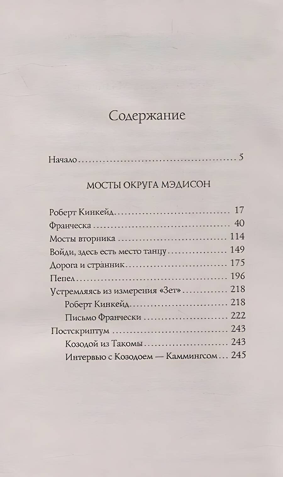 Эта книга - крупнейший литературный феномен Америки, который находился в списке бестселлеров крупнейших газет страны более 90 недель, по праву стал безоговорочным победителем премии ЭББИ. Только в США первый тираж романа тогда никому не известного автора, профессора из Айовы, составил семь миллионов экземпляров. "Мосты округа Мэдисон" - это роман, который пишут только раз в жизни, роман о любви и потере.| Издательство | РИПОЛ классик Группа Компаний ООО |