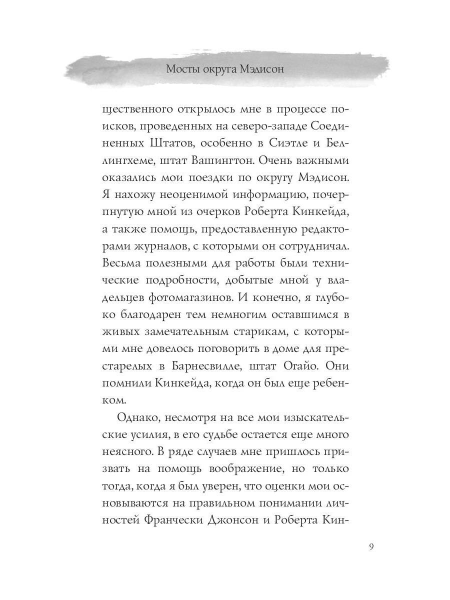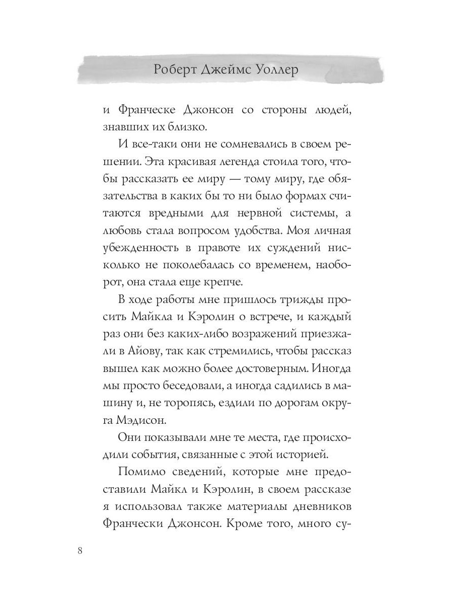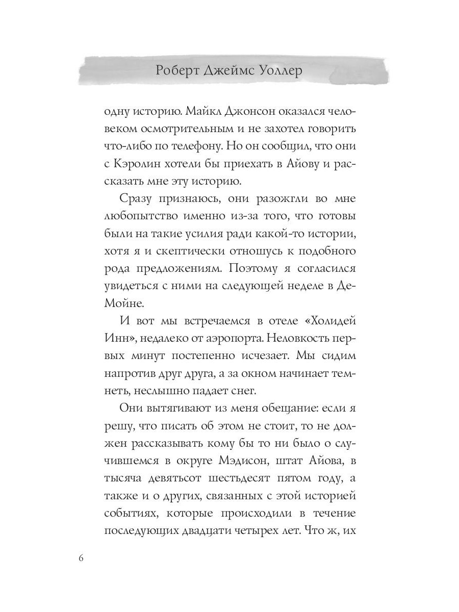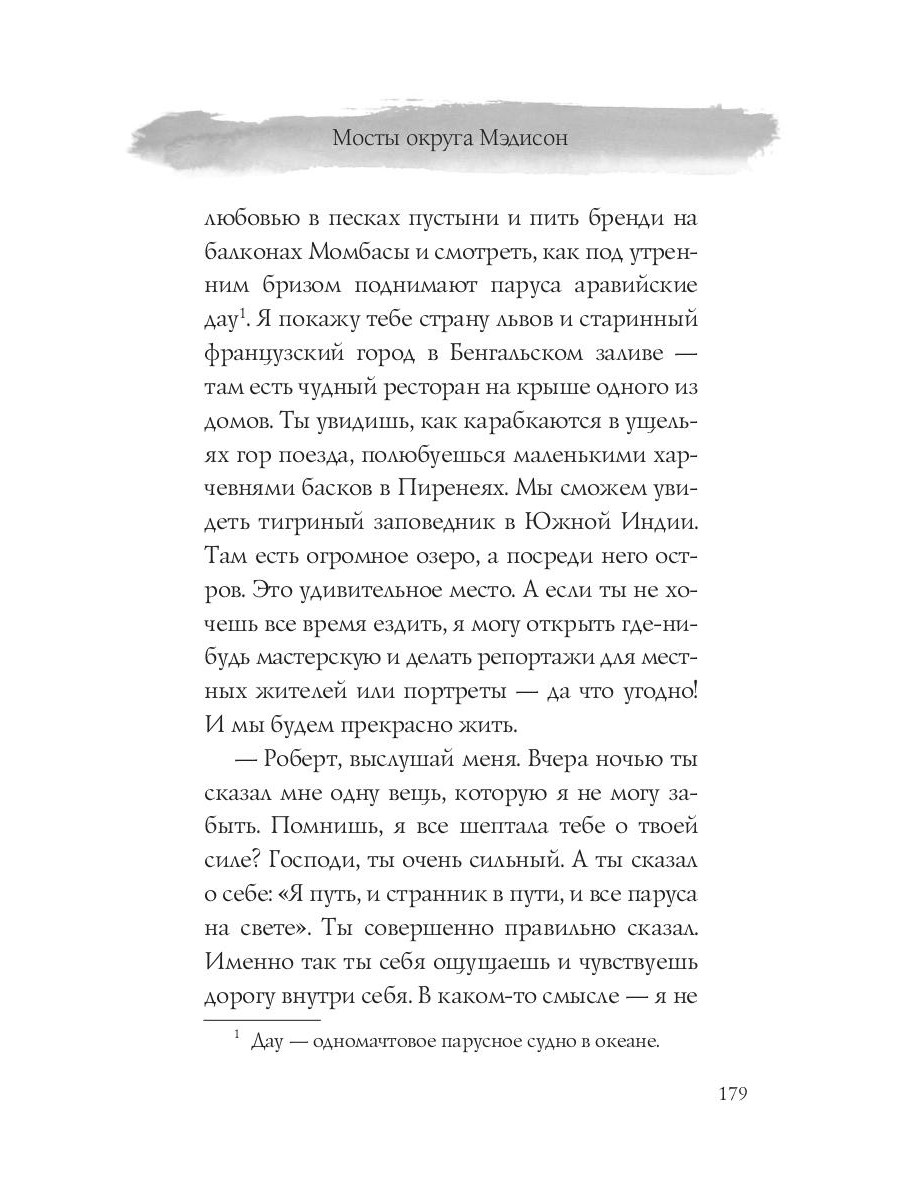 Эта книга - крупнейший литературный феномен Америки, который находился в списке бестселлеров крупнейших газет страны более 90 недель, по праву стал безоговорочным победителем премии ЭББИ. Только в США первый тираж романа тогда никому не известного автора, профессора из Айовы, составил семь миллионов экземпляров. «Мосты округа Мэдисон» - это роман, который пишут только раз в жизни, роман о любви и потере.| Издательство | Рипол Классик |
