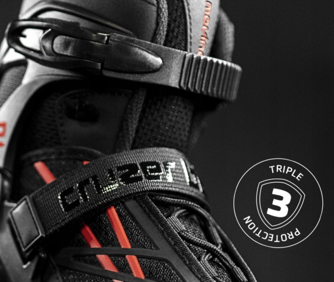Для вашего удобства и безопасности Cruzer B2 имеет тройную систему крепления. Компонент бокового скольжения, с другой стороны, предназначен для максимального комфорта при езде. Высококачественный алюминиевый сплав SKID гарантирует долговечность и легкость роликовых коньков.