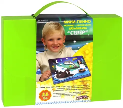 Объемная мозаика-аппликация "Север" выполнена из мягкого полимера, который дает юному конструктору новые удивительные возможности в игре: детали мозаики гнутся, но не ломаются, их всегда можно состыковать.