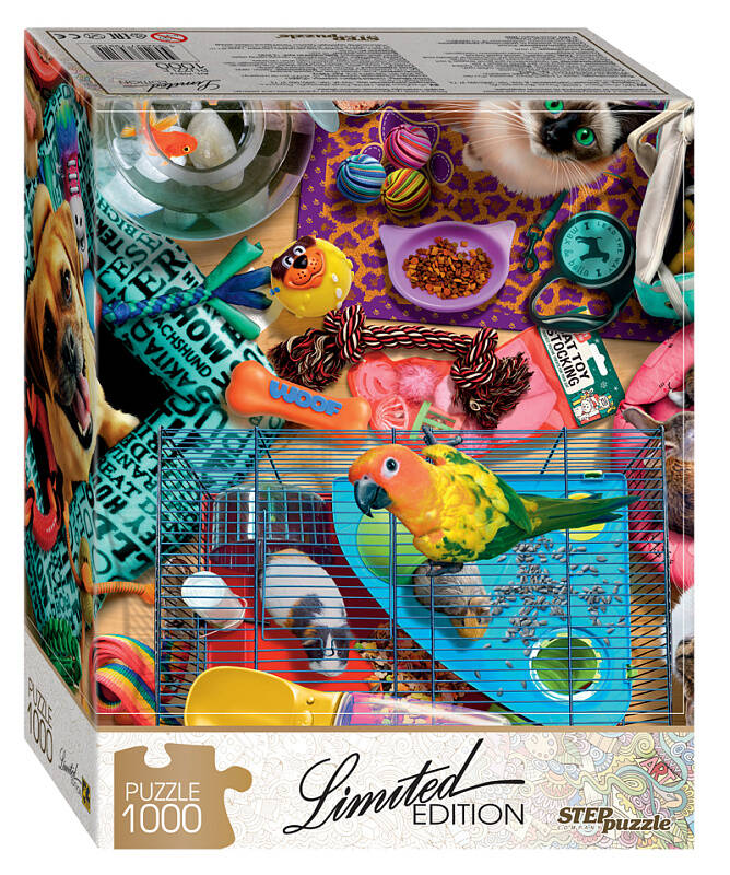 Пазл "Домашние любимчики" серии Limited edition состоит из 1000 элементов. На его картинке мы видим большой домашний зверинец - собак, кроликов, кошку, рыбку, попугая. Вокруг раскиданы игрушки любимчиков - словом, деталей тут очень много. Пазл необычен тем, что все детали в нём уникальны по форме. Для каждой - строго своё место на общей картине. Проверьте сами! Характеристики пазла: - стандартные детали пазла - 1,8 × 2 см; - размер собранного изображения - 68 × 48 см; - уникальная форма деталей; - материал - картон; - яркое, четкое изображение, точность подгонки деталей; - изготовлен из высококачественных нетоксичных материалов; - жесткая стильная упаковка. Пазл понравится взрослым и детям от 7 лет. Соберите пазл "Домашние любимчики" серии Limited edition - готовую картину будет очень интересно рассматривать!| Издательство | Степ Пазл ЗАО |