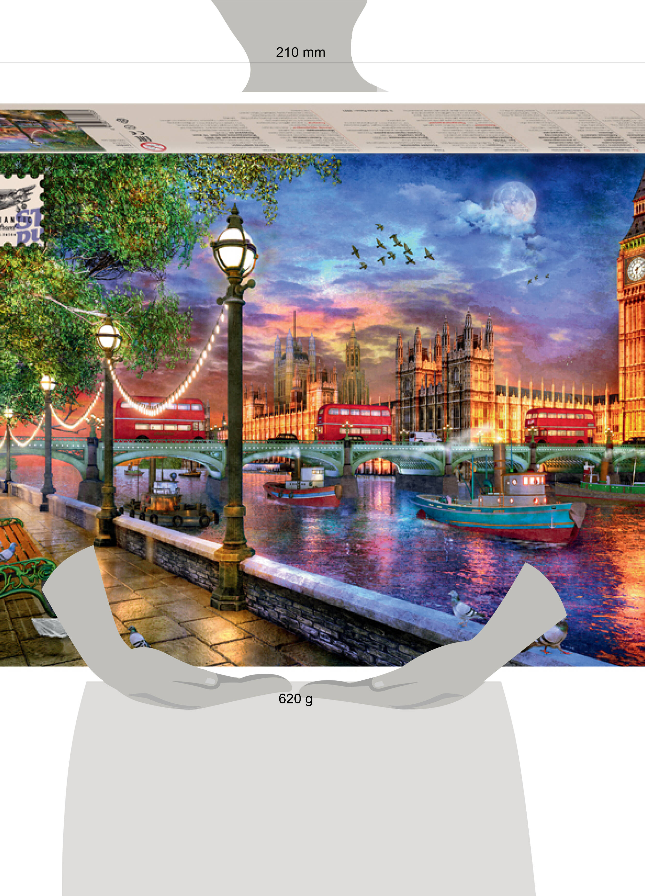 Пазл "Лондон" входит в серию "Romantic Travel". Лондон - один из самых посещаемых городов мира. Собрав 1000 элементов картины, пазломаны смогут оказаться вблизи реки с яркими фонарями и красивым мостом, а также наблюдать сразу несколько проплывающих мимо пароходов. На заднем плане изображения - знаменитый на весь мир Вестминстерский дворец и еще более популярная - часовая башня "Биг-Бен". О приближающейся ночи говорят не только тёмно-синее небо и большая луна за облаками, но и почти пустые двуярусные лондонские автобусы. Характеристики пазла: - стандартные детали пазла (2×1,8 см); - размер собранного изображения - 60*48 см; - материал - картон; - качественное изображение; - экологически чистые, нетоксичные материалы (компания Step Puzzle гарантирует высокое качество пазла и точность подгонки). Для кого? Пазл подходит для взрослых и детей от 7 лет. Коллекционный пазл "Лондон" станет прекрасным подарком для любителей путешествий. Рекомендуем приобрести специальный клей для пазлов, чтобы скрепить детали мозаики между собой и получить цельную картину. Также с этим пазлом покупают специальный коврик для комфортной сборки пазла.| Издательство | Степ Пазл ЗАО |