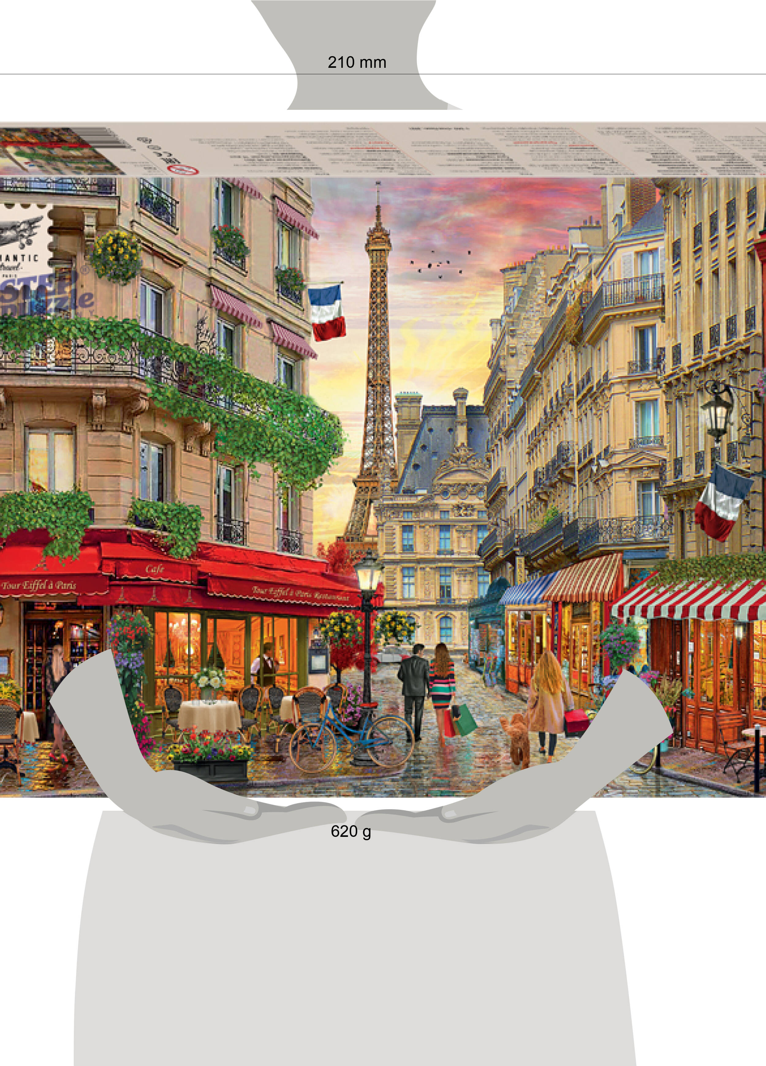 Пазл "Париж" входит в серию "Romantic Travel". Париж - столица Франции, которую с легкостью можно распознать по картинке. Изображение в 1000 элементов вместило в себя самое знаменитое архитектурное творение города-курорта - Эйфелеву башню, построенную более 130 лет назад. На переднем плане картины - небольшие улочки города, вдоль которых разместились уютные кафе. Но, только стоит поднять голову вверх, как дух начинает захватывать от величественных зданий города любви - Парижа. Характеристики пазла: - стандартные детали пазла (2×1,8 см); - размер собранного изображения - 60*48 см; - материал - картон; - качественное изображение; - экологически чистые, нетоксичные материалы (компания Step Puzzle гарантирует высокое качество пазла и точность подгонки). Для кого? Пазл подходит для взрослых и детей от 7 лет. Коллекционный пазл "Париж" станет прекрасным подарком для любителей путешествий. Рекомендуем приобрести специальный клей для пазлов, чтобы скрепить детали мозаики между собой и получить цельную картину. Также с этим пазлом покупают специальный коврик для комфортной сборки пазла.| Издательство | Степ Пазл ЗАО |