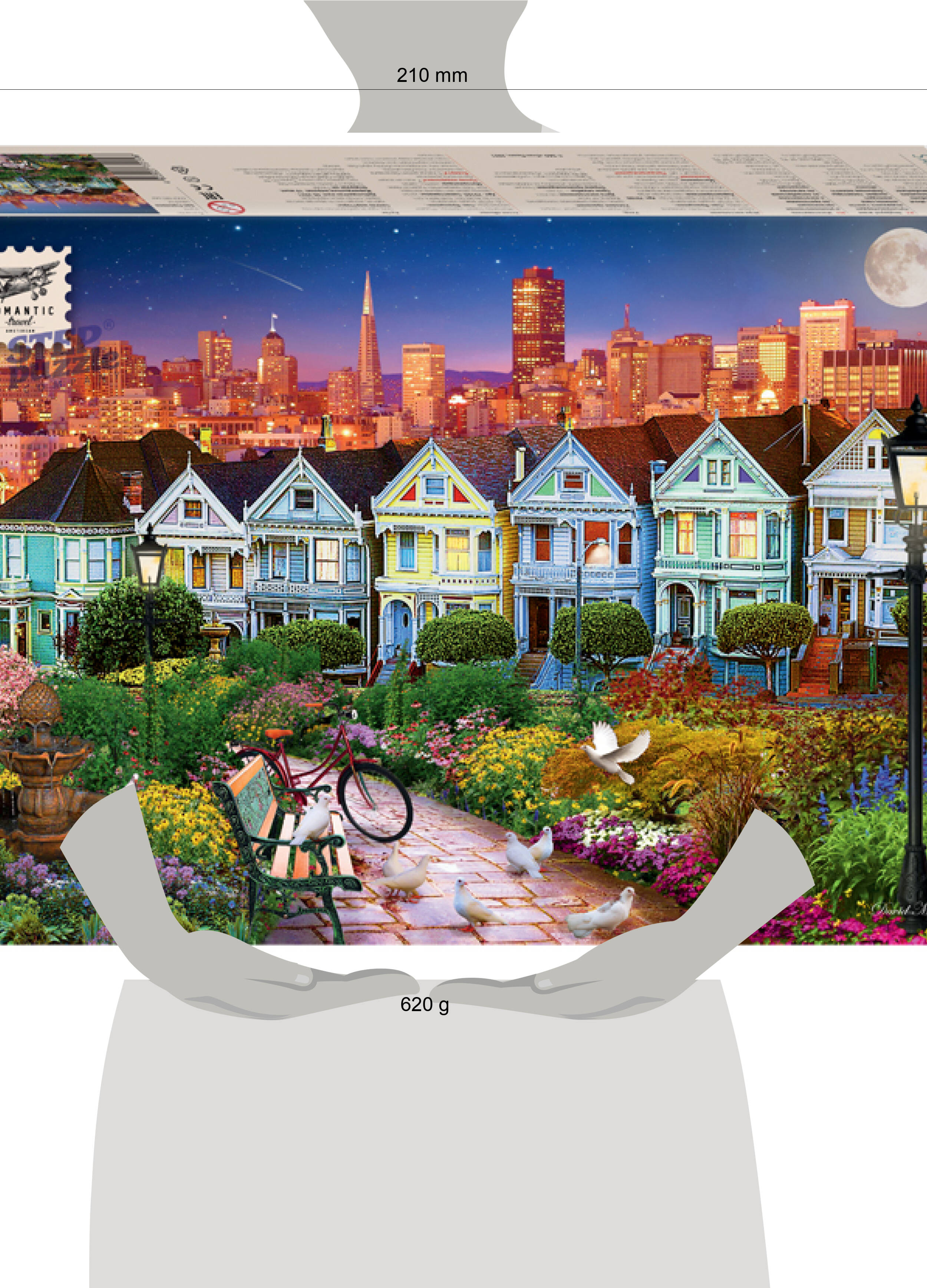 Пазл "Сан-Франциско" входит в серию "Romantic Travel". Сан-Франциско можно назвать по истине мировым туристическим центром. Город, который известен своими летними холодными туманами и сочетанием сразу двух архитектур: викторианской и современной, вошел в серию "Travel Collection". Собрав 1000 элементов картинки, пазломаны увидят Сан-Франциско не только как один из самых оживленных городов в США, но и смогут ощутить его спокойствие. Ведь среди величественных высоток расположились и частные коттеджи с самыми разнообразными цветниками и клумбами. Завершают изображение голуби - символ мира. Характеристики пазла: - стандартные детали пазла (2×1,8 см); - размер собранного изображения - 60*48 см; - материал - картон; - качественное изображение; - экологически чистые, нетоксичные материалы (компания Step Puzzle гарантирует высокое качество пазла и точность подгонки). Для кого? Пазл подходит для взрослых и детей от 7 лет. Коллекционный пазл "Сан-Франциско" станет прекрасным подарком для любителей путешествий. Рекомендуем приобрести специальный клей для пазлов, чтобы скрепить детали мозаики между собой и получить цельную картину. Также с этим пазлом покупают специальный коврик для комфортной сборки пазла.| Издательство | Степ Пазл ЗАО |