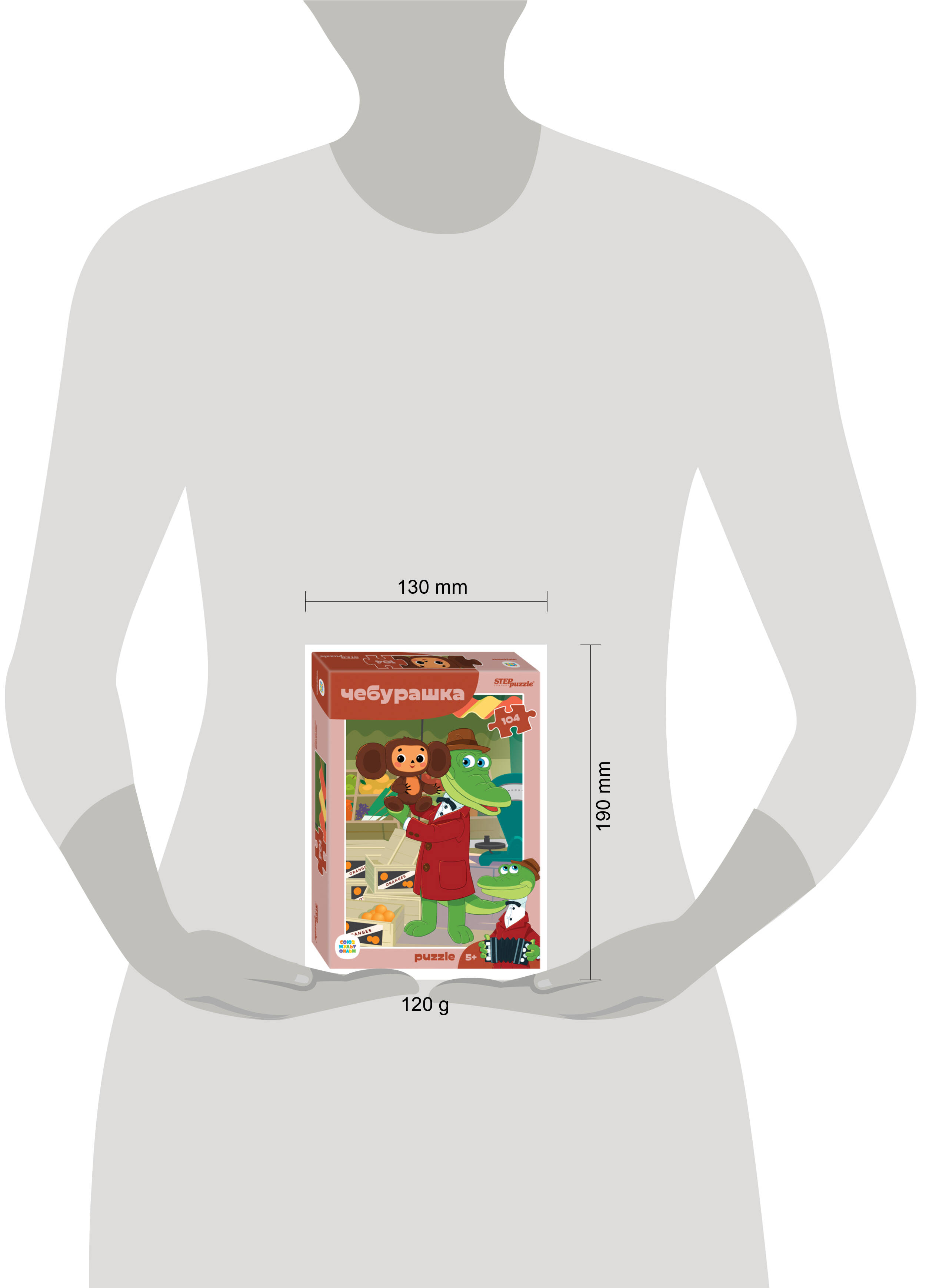 Пазл "Чебурашка" состоит из 104 деталей. На картинке представлен сюжет, как Гена нашел Чебурашку в ящиках с апельсинами. Характеристики пазла: - стандартные детали пазла (3 × 2,3 см); - размер собранного изображения - 23 × 33 см; - качественное яркое изображение; - материал - картон; - экологически чистые, нетоксичные материалы (компания Step Puzzle гарантирует высокое качество пазла и точность подгонки). Пазл подходит для детей от 5 лет. Детям пазл "Чебурашка" точно понравится: он милый и добрый, с любимыми героями на картинке.| Издательство | Степ Пазл ЗАО |