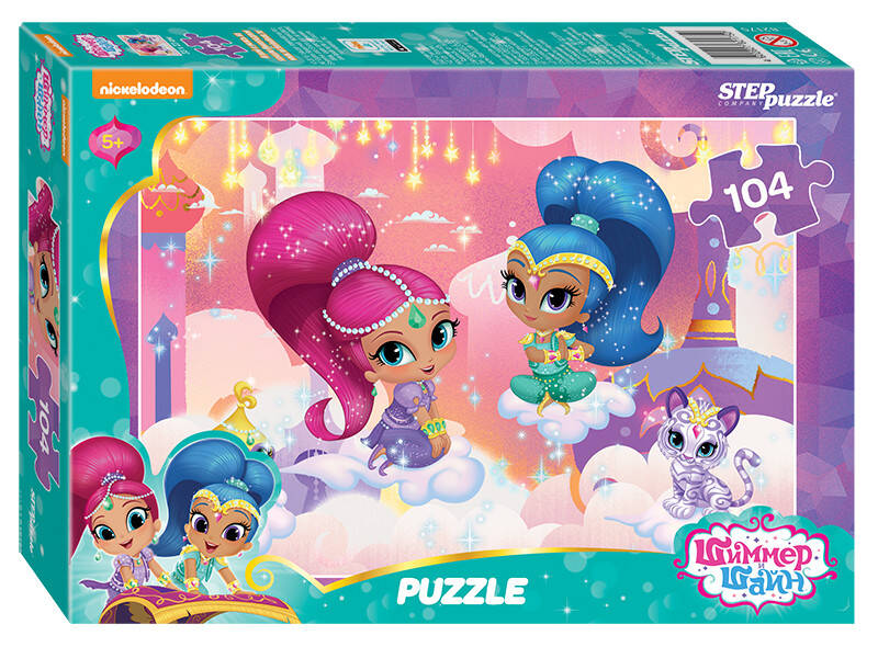 Пазл "Шиммер и Шайн" состоит из 104 деталей. На картинке две сестрички-джинны в прямом смысле слова витают в облаках. И тигрёнок с ними! Характеристики пазла: - стандартные детали пазла (3 × 2,3 см); - размер собранного изображения - 23 × 33 см; - качественное яркое изображение; - материал - картон; - экологически чистые, нетоксичные материалы (компания Step Puzzle гарантирует высокое качество пазла и точность подгонки). Пазл подходит для детей от 5 лет. Вашей дочке пазл "Шиммер и Шайн" должен понравиться. Не верите - проверьте сами!