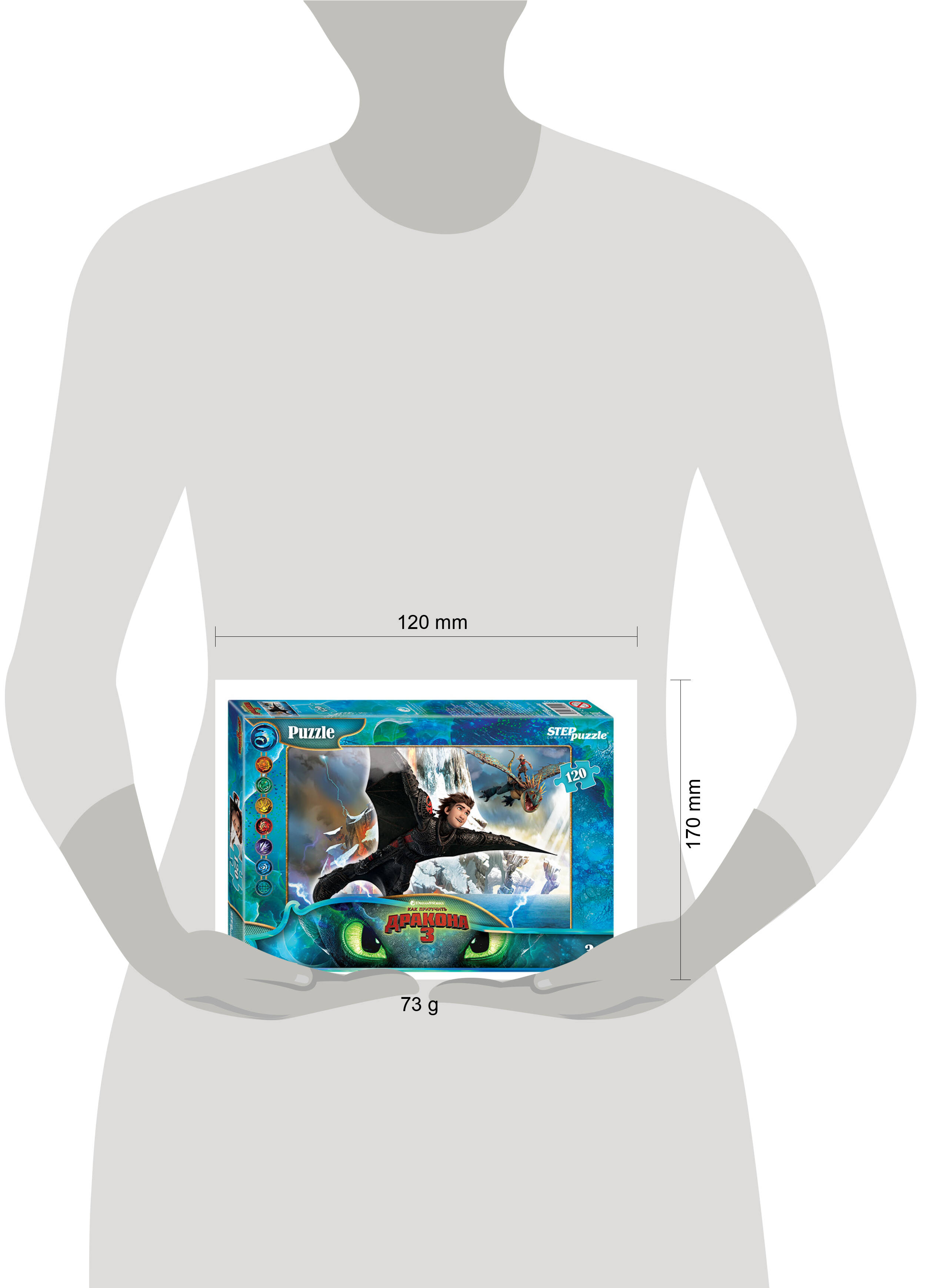 Пазл "Как приручить дракона - 3" состоит из 120 деталей. На картинках изображены персонажи этой саги о драконах - Иккинг, Астрид, Беззубик, Громгильда, Ночная и Дневная Фурии, Громмель и Ужасное Чудовище. Характеристики пазла: - стандартные детали пазла (2 × 1,5 см); - размер собранного изображения - 16,5 × 23 см; - качественное яркое изображение; - материал - картон; - экологически чистые, нетоксичные материалы (компания Step Puzzle гарантирует высокое качество пазла и точность подгонки). Пазл подходит для детей от 3 лет. Порадуйте деток яркими пазлами "Как приручить дракона - 3" с героями любимого мультфильма.