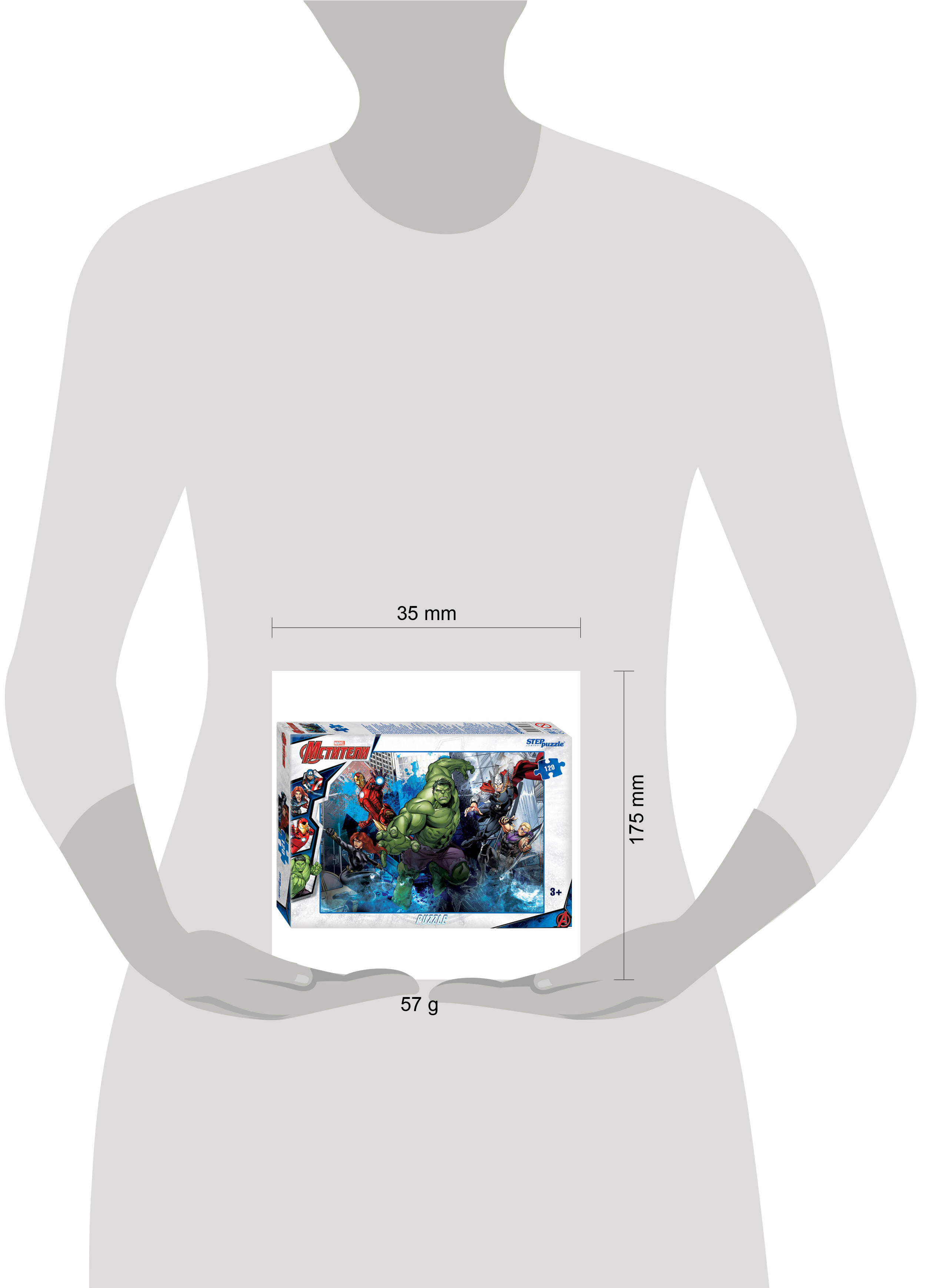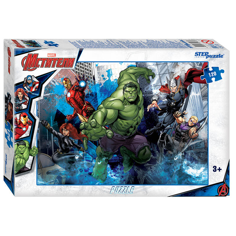 Пазл "Marvel" создан по мотивам одноименного комикса. Как и всегда, яркие изображения погружают пазломанов в небольшие эпизоды из жизни супергероев. На картинке маленькие любители пазлов не только увидят таких героев как Тор, Соколиный глаз, Капитан Америка, Железный человек, Человек-паук, Халк и многих других, но и смогут собрать их самостоятельно. Характеристики пазла: - стандартные детали пазла (2×1,5 см); - размер собранного изображения - 16,5*23 см; - материал - картон; - качественное изображение; - экологически чистые, нетоксичные материалы (компания Step Puzzle гарантирует высокое качество пазла и точность подгонки). Для кого? Пазл подходит для взрослых и детей от 3 лет. Пазл "Marvel" станет прекрасным подарком для любителей приключений. Рекомендуем приобрести специальный клей для пазлов, чтобы скрепить детали мозаики между собой и получить цельную картину. Также с этим пазлом покупают специальный коврик для комфортной сборки пазла.