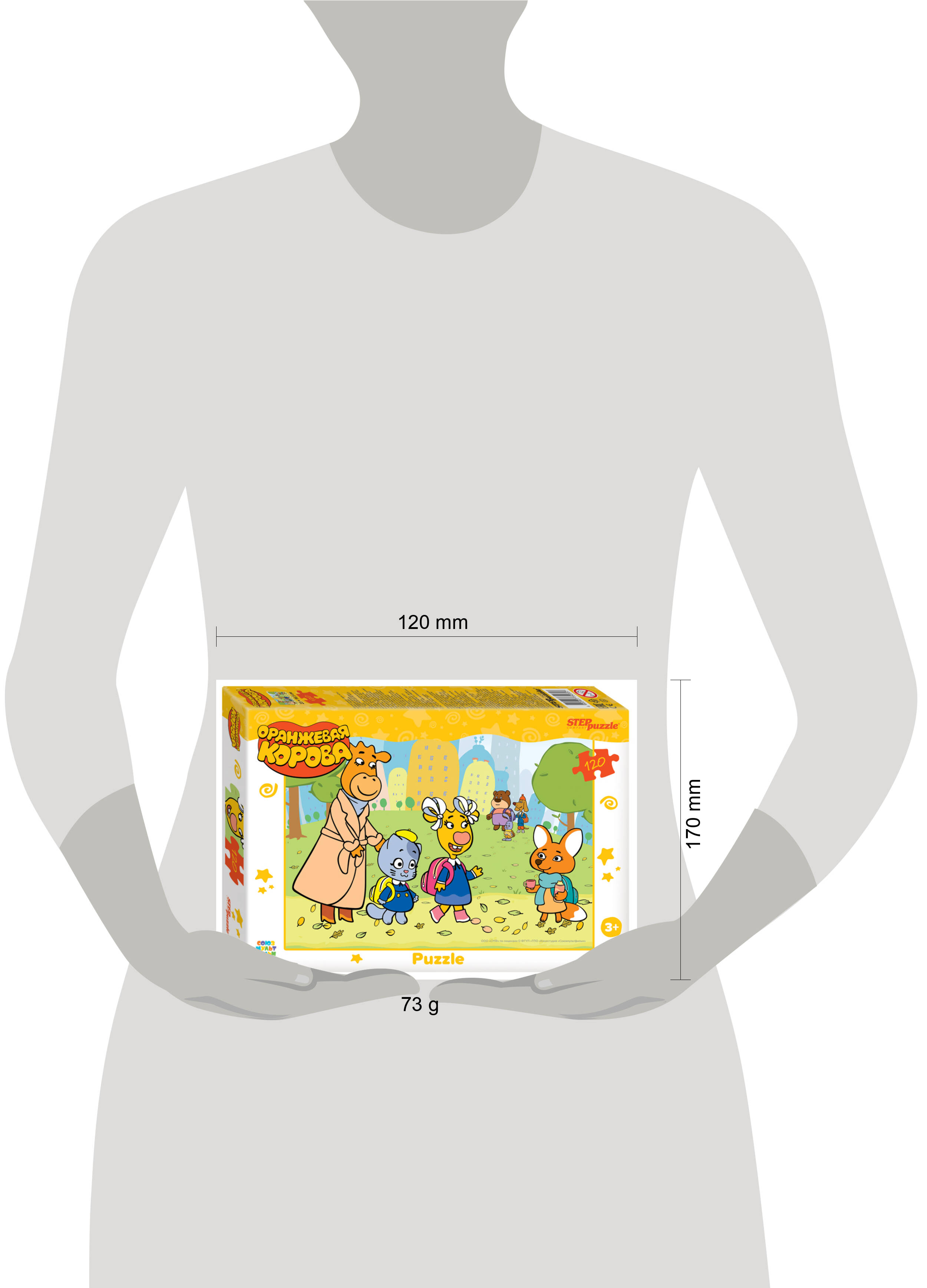 Пазл "Оранжевая корова" состоит из 120 элементов. Как и всегда, яркие изображения погружают пазломанов в небольшие эпизоды из жизни главных героев популярного мультфильма. На одной из картинок мама Корова провожает Лиску, Мусю и Зо в школу. Осенняя атмосфера витает буквально во всем: одежде, погоде, а дополняют ее термос с теплым чаем. От одной картинки переходим к другой. На ней традиционные семейные сборы, где папа Бык гладит вещи, в то время как мама, Зо и Муся уже готовы выйти в свет. Судя по всему, семья собирается в цирк на выступление Зо и деда Харитона. Об этом можно судить глядя на следующую картинку, где главные герои блистают на сцене под падающие конфетти и свет софитов. Конечно же, завершают новую серию пазлы, где вся семья мультфильма "Оранжевая корова" вместе, а рядом с ними самые близкие друзья. Характеристики пазла: - стандартные детали пазла (2×1,8 см); - размер собранного изображения - 23*16,5 см; - материал - картон; - качественное изображение; - экологически чистые, нетоксичные материалы (компания Step Puzzle гарантирует высокое качество пазла и точность подгонки). Для кого? Пазл подходит для взрослых и детей от 3 лет. Пазл "Оранжевая корова" станет прекрасным подарком для любителей приключений. Рекомендуем приобрести специальный клей для пазлов, чтобы скрепить детали мозаики между собой и получить цельную картину. Также с этим пазлом покупают специальный коврик для комфортной сборки пазла.| Издательство | Степ Пазл ЗАО |