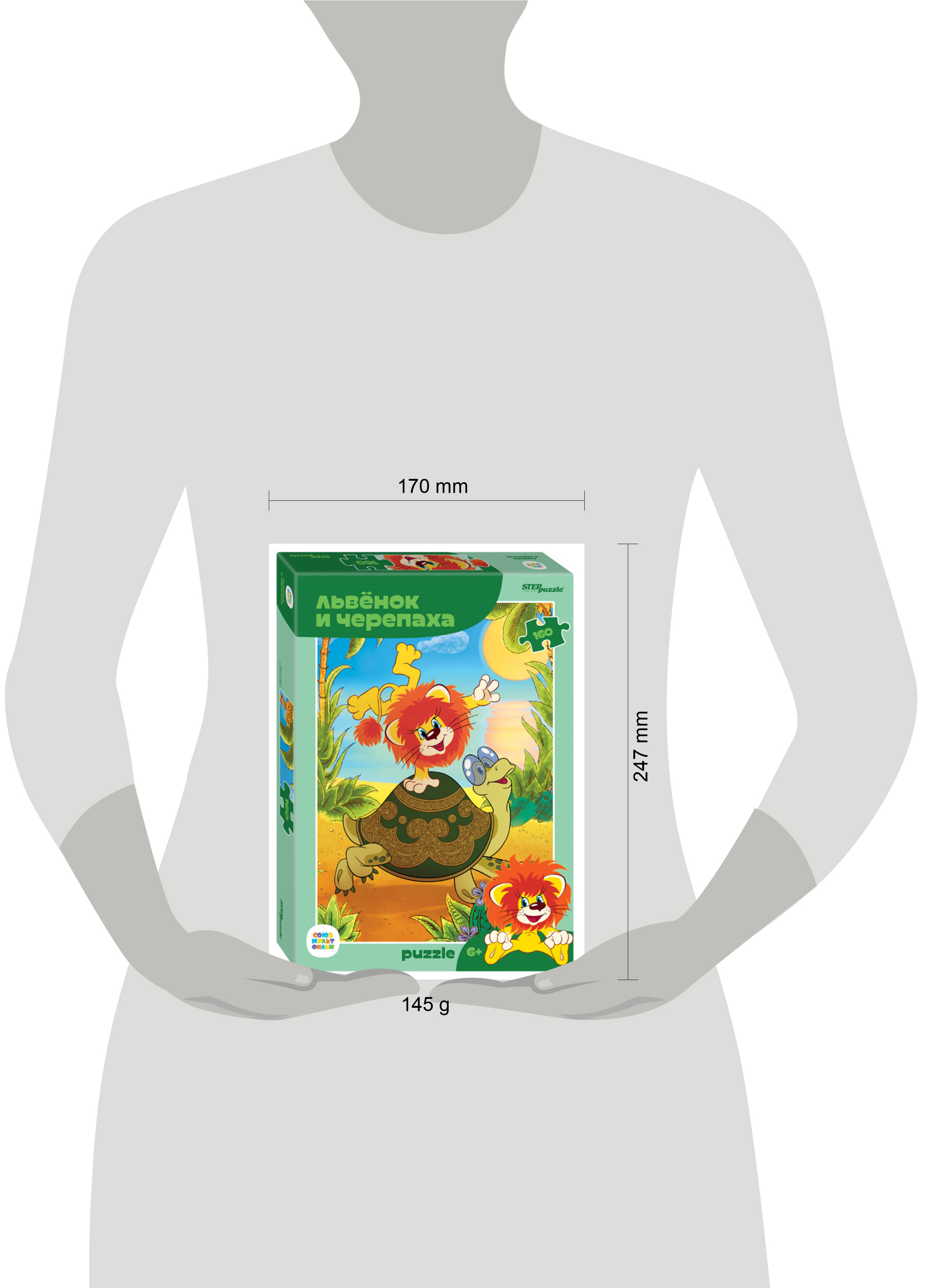 Пазл "Львенок и Черепаха" состоит из 160 деталей. На картинке мы вилдим, как львенок по имени Ррр-Мяу катается верхом на Большой Черепахе| Издательство | Степ Пазл ЗАО |