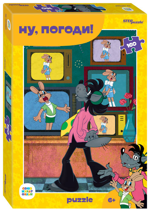 Пазл "Ну, погоди!" состоит из 160 деталей. На картинке мы видим известную сцену, как Волк зашел в магазин телевизоров.| Издательство | Степ Пазл ЗАО |