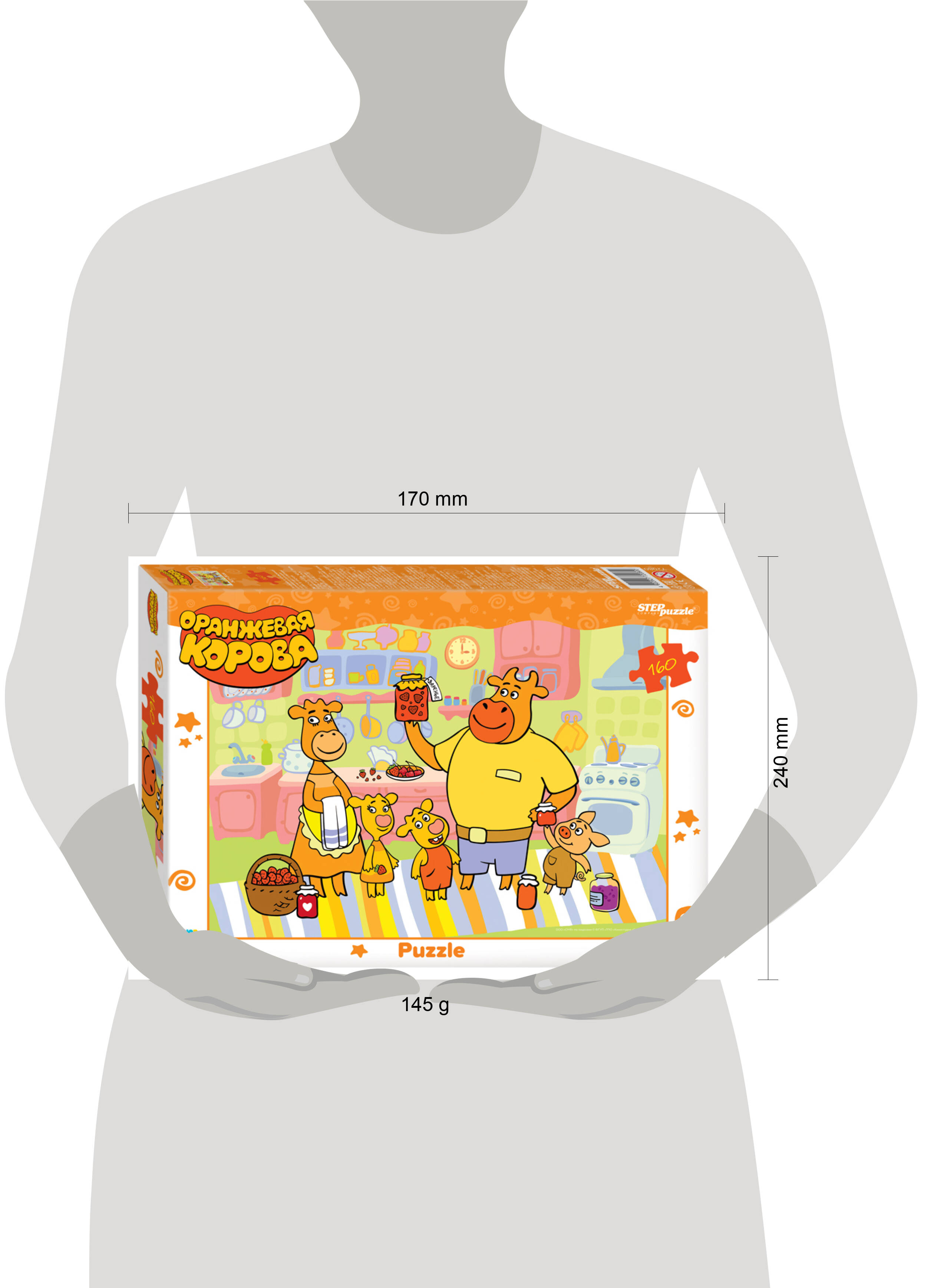 Пазл "Оранжевая корова" состоит из 160 деталей. На его картинке мы видим пятерых главных героев: Маму Корову и папу Быка, Бо, Зо иих друга поросенка Колю. Характеристики пазла: - стандартные детали пазла (2×2,3 см); - размер собранного изображения - 24*34,5 см; - материал - картон; - качественное изображение; - экологически чистые, нетоксичные материалы (компания Step Puzzle гарантирует высокое качество пазла и точность подгонки). Для кого? Пазл подходит для детей от 6 лет. Пазл "Оранжевая корова" милый, добрый и яркиий. Такой наверняка понравится фанатам мультфильма. Рекомендуем приобрести специальный клей для пазлов, чтобы скрепить детали мозаики между собой и получить цельную картину.| Издательство | Степ Пазл ЗАО |