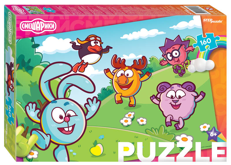 Пазл "Смешарики" состоит из 160 деталей. На его картинке нарисованы пятеро главных геров, они веселятся и дурачатся на лесной полянке. Характеристики пазла: - стандартные детали пазла (2×2,3 см); - размер собранного изображения - 24*34,5 см; - материал - картон; - качественное изображение; - экологически чистые, нетоксичные материалы (компания Step Puzzle гарантирует высокое качество пазла и точность подгонки). Для кого? Пазл подходит для детей от 6 лет. Пазл "Смешарики" наверняка понравится всем любителям этого забавного мультфильма. Рекомендуем приобрести специальный клей для пазлов, чтобы скрепить детали мозаики между собой и получить цельную картину.| Издательство | Степ Пазл ЗАО |