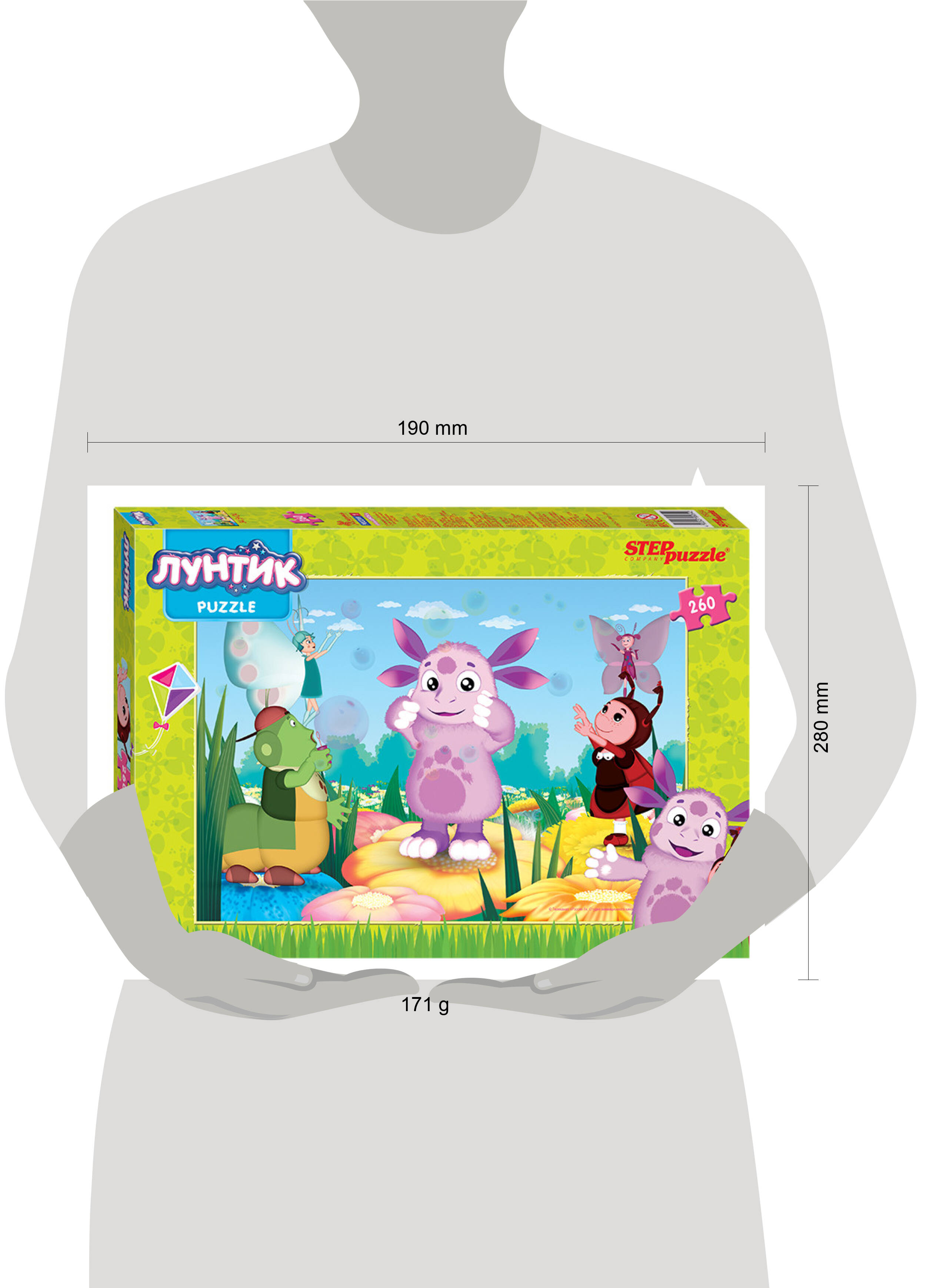 Пазл "Лунтик" создан по мотивам мультфильма "Приключения Лунтика и его друзей" (Мельница). История рассказывает о приключениях Лунтика - милого пришельца с четырьмя ушами, который родился на Луне и упал на Землю. Лунтик родился необычным малышом. Он вежлив, прислушивается к мнению старших и не ленится обдумать услышанное. Никогда не боится защитить слабых и отстоять свое мнение. Данный мультфильм учит детей доброте, развивает навыки общения и взаимопомощи. Характеристики пазла: - качественное изображение; - стандартные детали пазла (1,7 × 2,1 см) подходят для детей от 6 лет. Они удобны в манипулировании, эргономичны для детской руки, активно развивают мышление, внимание и память; - экологически чистые, нетоксичные материалы (компания Step Puzzle гарантирует высокое качество пазла и точность подгонки). Размер собранного изображения - 34,5 × 24 см. Для кого? Пазл подходит для детей от 6 лет. Проведите время с вашим ребенком в компании забавных персонажей мультфильма "Приключения Лунтика и его друзей". Цена указана за одну штуку.| Издательство | Степ Пазл ЗАО |