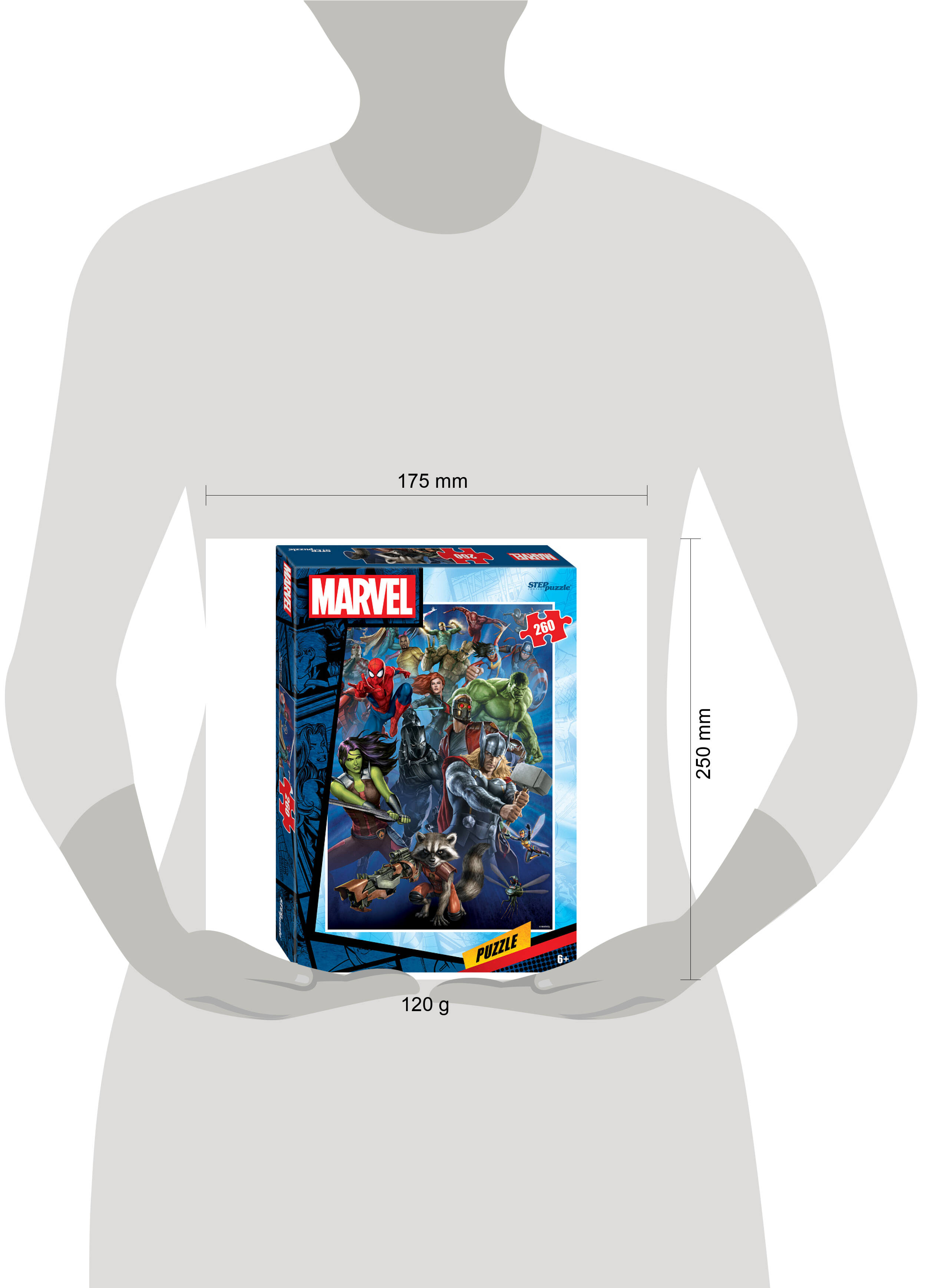 Пазл "Marvel" создан по мотивам одноименного комикса. Тор, Соколиный глаз, Капитан Америка, Железный человек, Человек-паук, Халк и многих других героев популярной киновселенной Marvel теперь можно собрать самостоятельно. На картинке не один герой, а сразу несколько, поскольку выбрать лучшего из лучших не так уж и просто. Характеристики пазла: - стандартные детали пазла (2×1,7 см); - размер собранного изображения - 24*34,5 см; - материал - картон; - качественное изображение; - экологически чистые, нетоксичные материалы (компания Step Puzzle гарантирует высокое качество пазла и точность подгонки). Для кого? Пазл подходит для детей от 6 лет. Пазл "Marvel" отлично подойдет в качестве подарка для всех любителей приключений. Для комфортной сборки пазла советуем приобрести специальный коврик. Рекомендуем приобрести специальный клей для пазлов, чтобы скрепить детали мозаики между собой и получить цельную картину.| Издательство | Степ Пазл ЗАО |