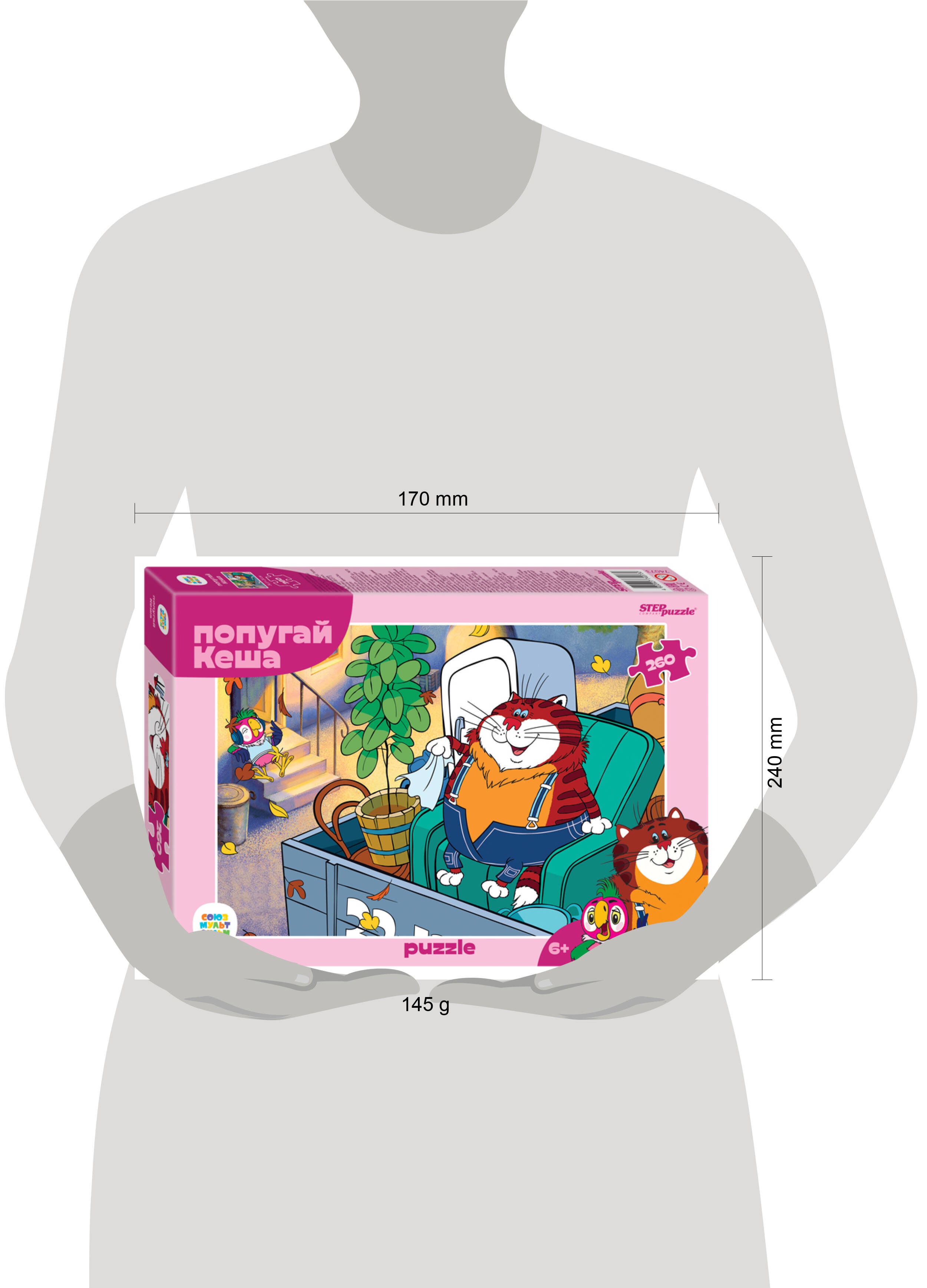 Пазл "Попугай Кеша" состоит из 260 деталей. В центре картинки мы видим кота Василия, который вальяжно развалился в кресле и на прощание перед переездом машет Кеше белым платочком. Характеристики пазла: - стандартные детали пазла (2×1,7 см); - размер собранного изображения - 24*34,5 см; - материал - картон; - качественное изображение; - экологически чистые, нетоксичные материалы (компания Step Puzzle гарантирует высокое качество пазла и точность подгонки). Для кого? Пазл подходит для детей от 6 лет. Пазл "Попугай Кеша" оценят и взрослые, и дети, ведь он сделан по мотивам нестареющего мультфильма. Для комфортной сборки пазла советуем приобрести специальный коврик. Рекомендуем приобрести специальный клей для пазлов, чтобы скрепить детали мозаики между собой и получить цельную картину.| Издательство | Степ Пазл ЗАО |